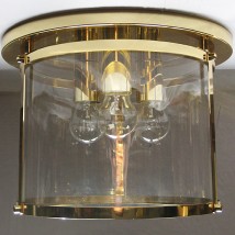 Aus massivem Messing handgefertigte runde dreiflammige Deckenleuchte in Messing matt oder glänzend und klar lackiert bzw. in Messing patiniert und Messing antik unlackiert.