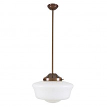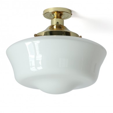 Der Glasschirm dieser in Irland handgefertigten Deckenlampe erinnert an die charakteristischen „School house“-Lampen, wie sie in den 1920er Jahren auf den britischen Inseln verbreitet waren.