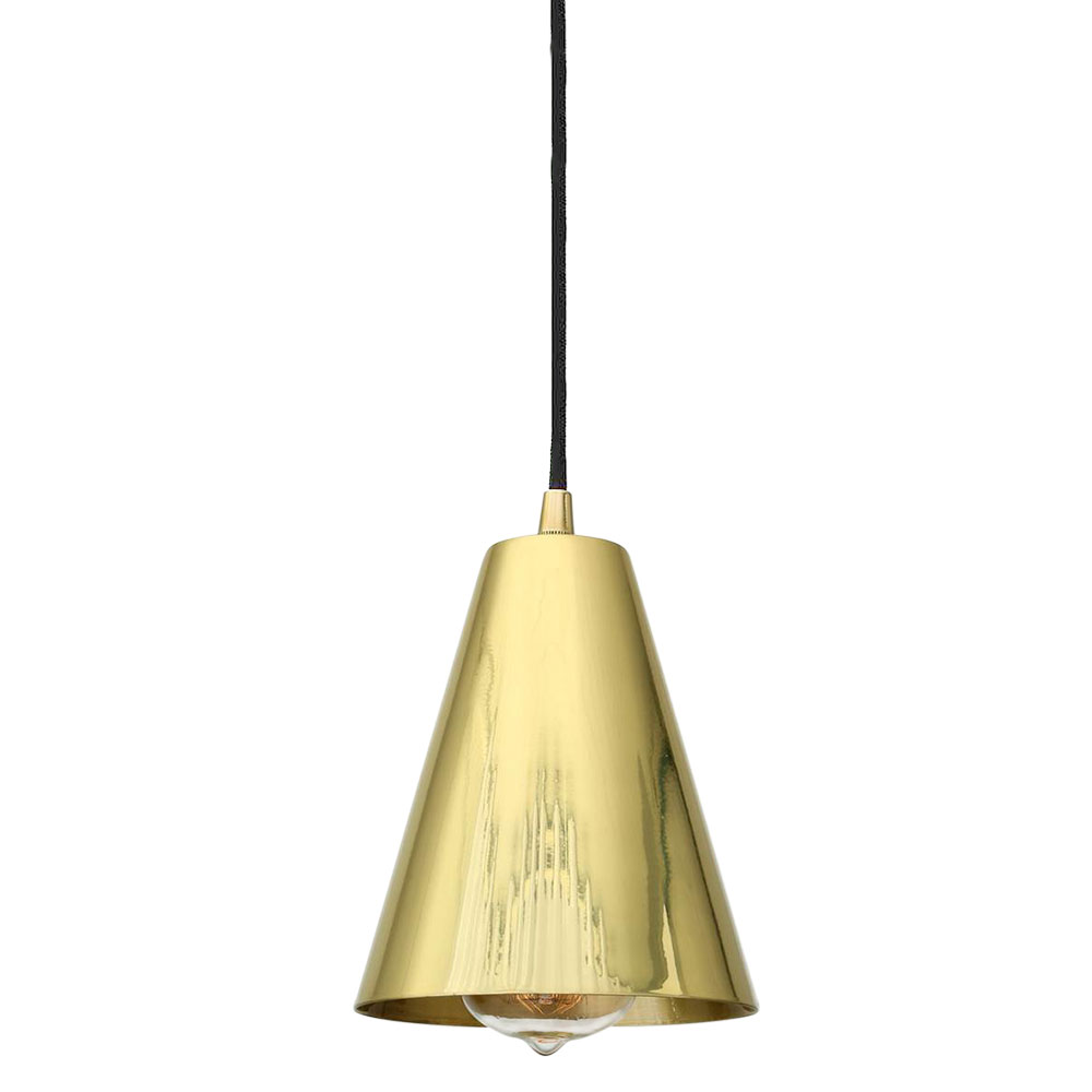 Diese einfache, kleine Messing-Hängeleuchte in Kegelform kommt am besten dort zum Einsatz, wo eine behagliche Atmosphäre gewünscht ist. Sie eignet sich zur Aufhängung über kleinen Tischen und insbesondere in Gruppen bzw. Reihen über einem Tresen oder einer Theke.