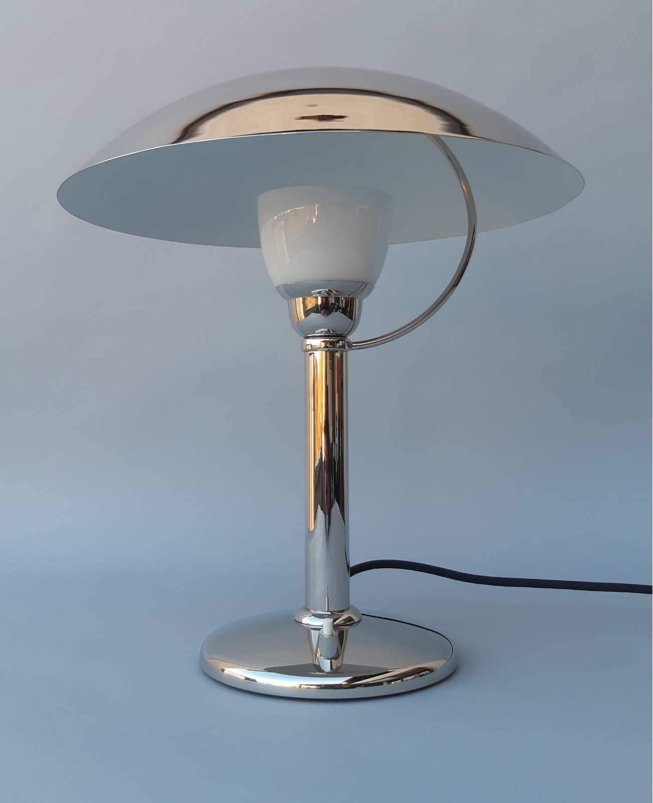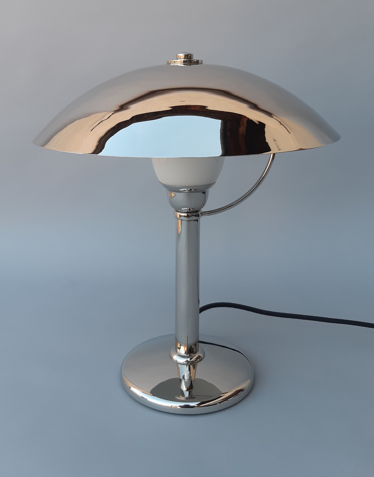Elegante Art déco Tisch-Leuchte mit vernickeltem Schirm