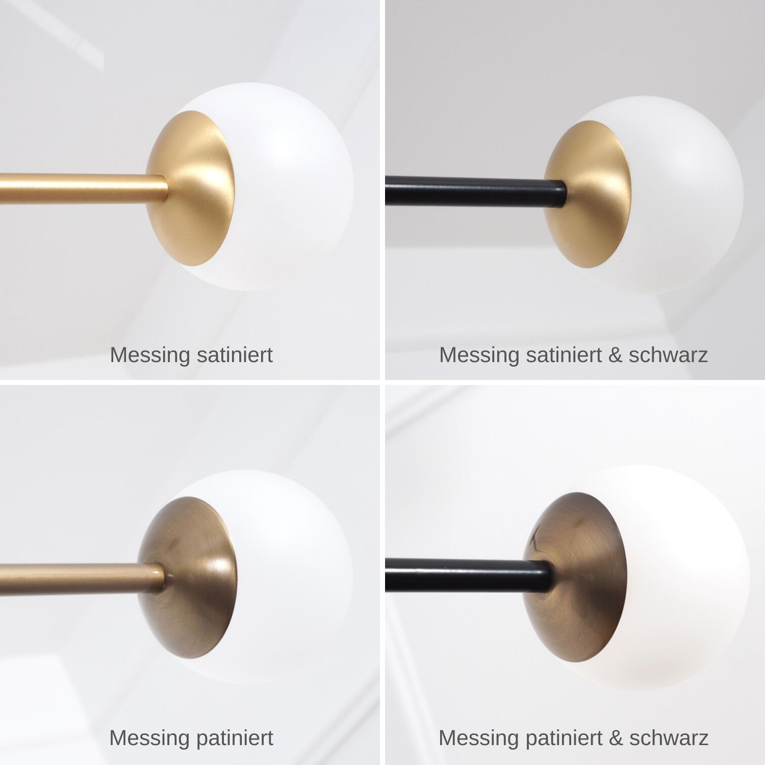 Den minimalistischen Kugel-Deckenleuchter gibt es mit Gestängen in acht Standard-Gesamthöhen von ca. 35 cm (Modell 1) bis 140 cm (Modell 8) – andere Maße sind auf Anfrage möglich.