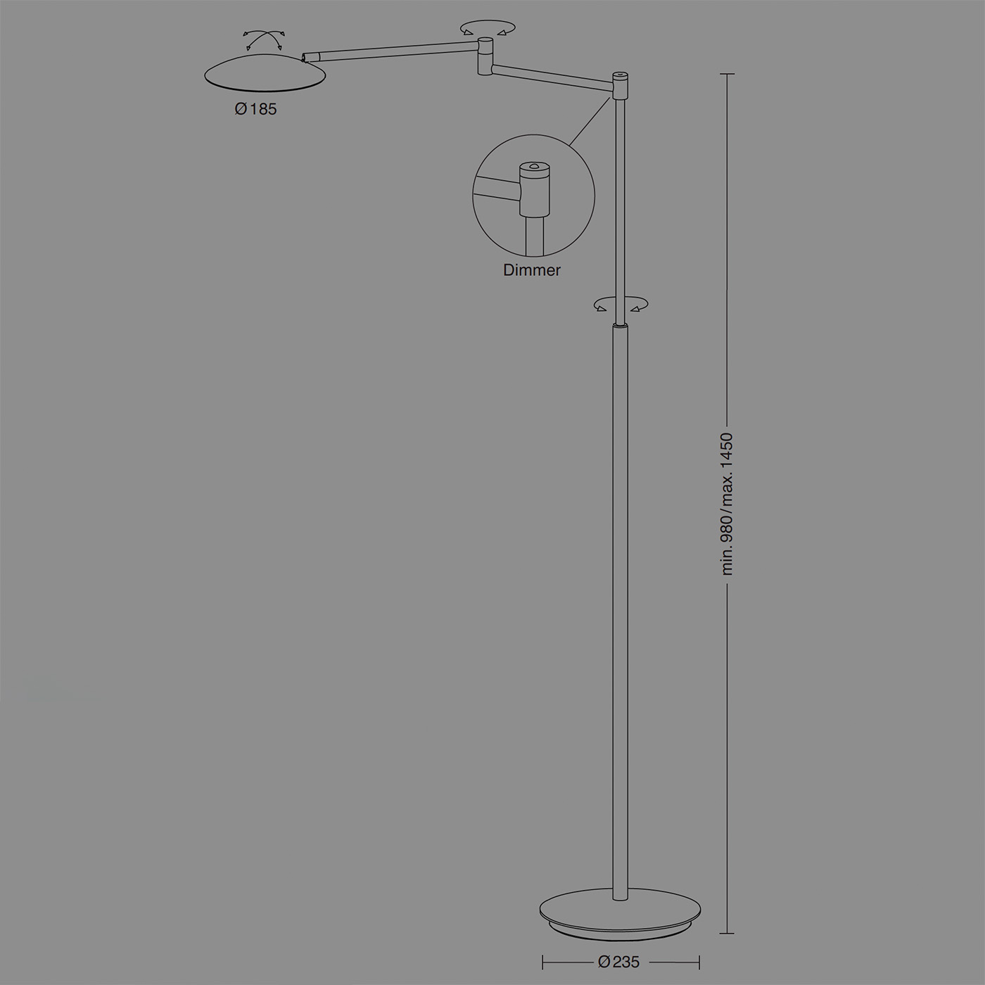 Der an Gelenken sowie in der Höhe verstellbare Ausleger mit rundem Leuchtenkopf strahlt mit 3500 Lumen sowie einem Farbwiedergabe-Index (CRI) von über 90. Sie kommt damit dem Ideal von natürlichem Sonnenlicht sehr nahe und gehört sicherlich zu den lichtstärksten Stehleuchten auf der Welt.