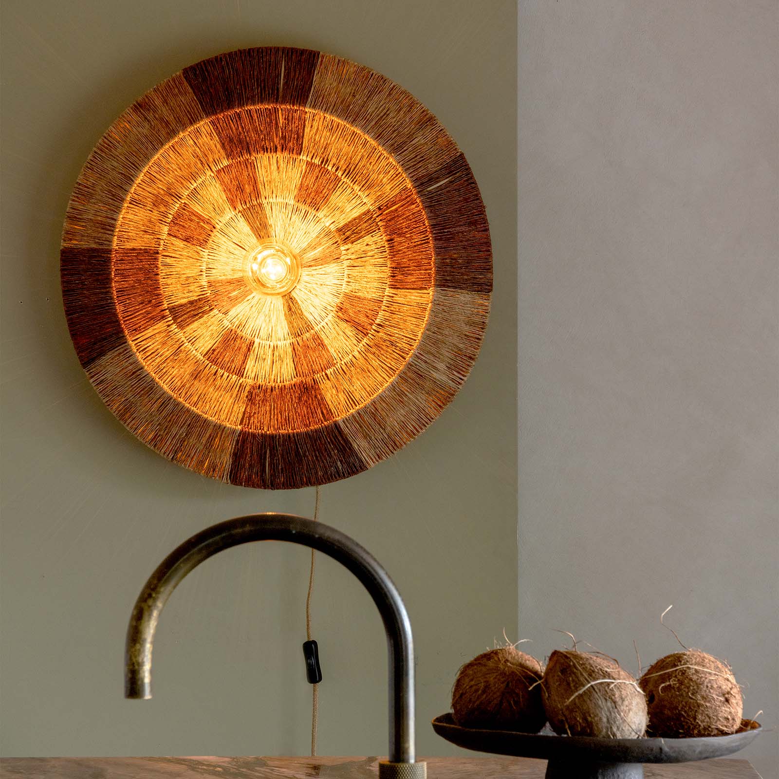 Diese Wandleuchte verbindet ausdrucksstarkes Design mit einem klaren Bekenntnis zu Nachhaltigkeit. Ihre runde Form und die warmen Naturtönen sorgen für eine ruhige, organische Atmosphäre in den Raum. Die Leuchte sorgt für ein angenehm diffuses Licht, das Wände sanft akzentuiert und eine behagliche Stimmung erzeugt – ideal für Wohn- und Schlafbereiche oder stilvolle Flure.