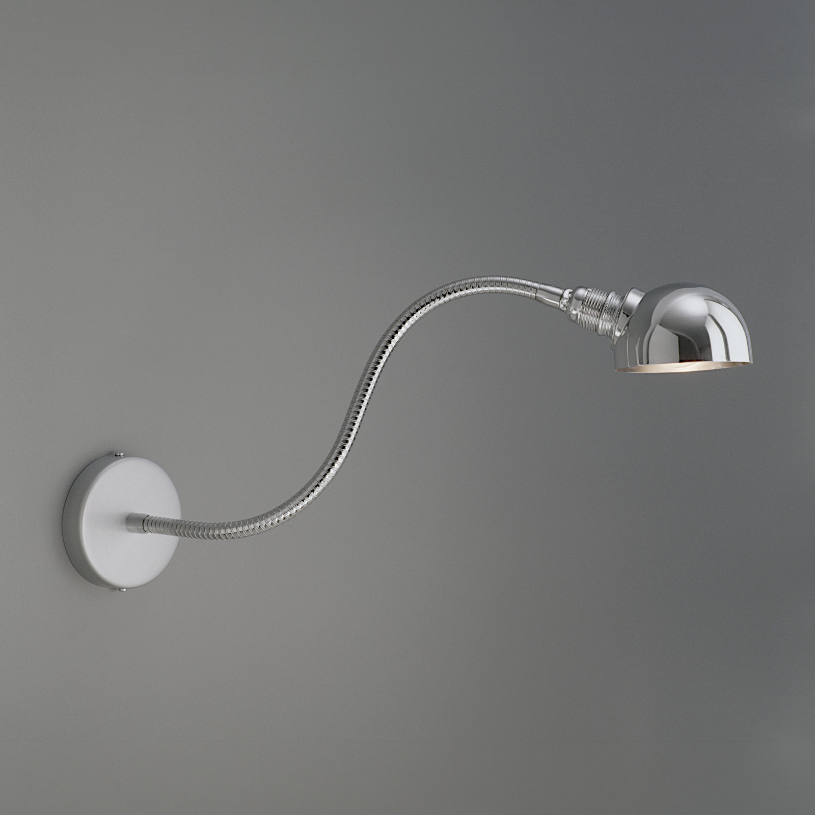 Material: Flexarm und Reflektor aus verchromtem Stahl, Wandteil aus Stahl lackiert