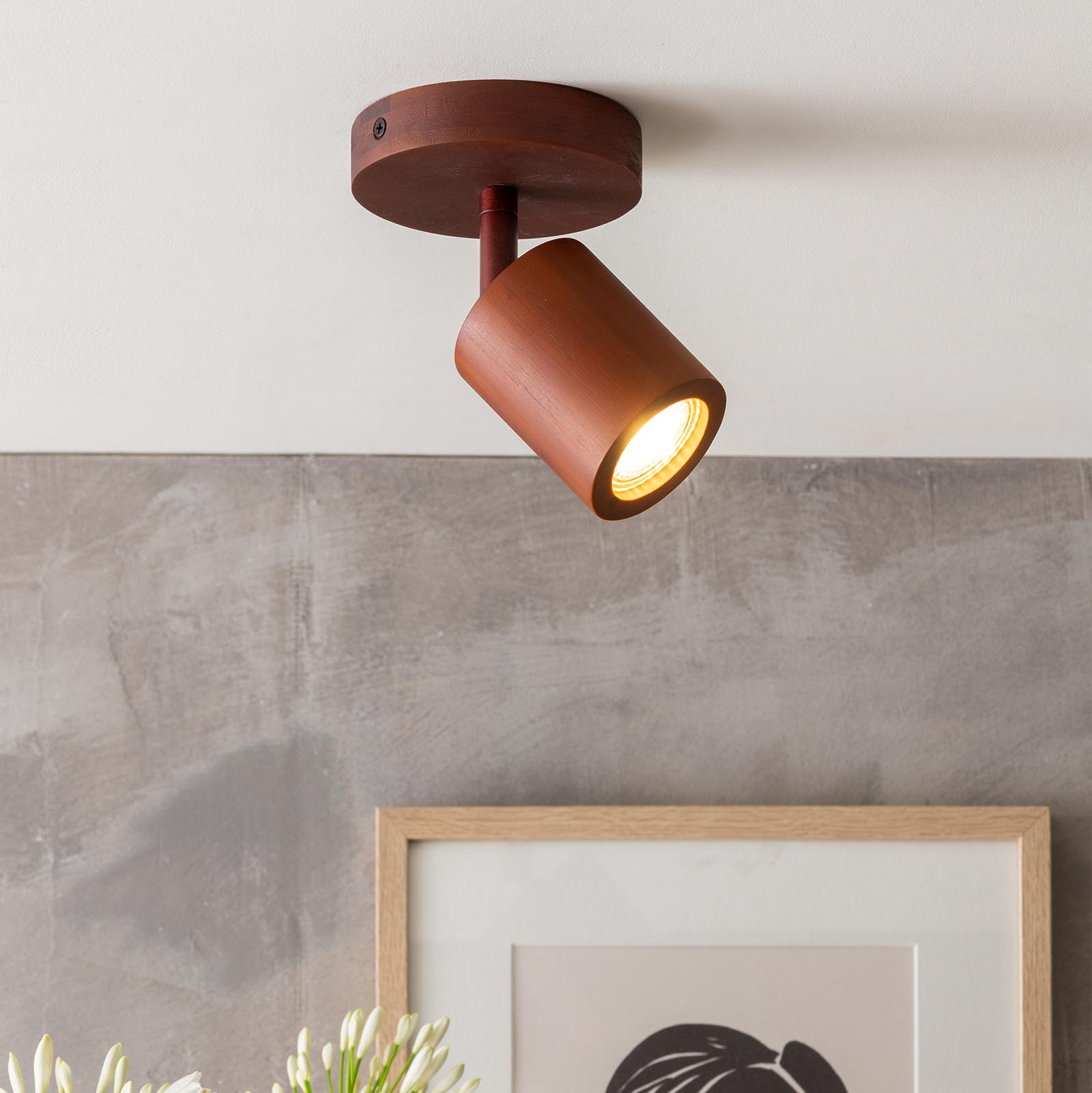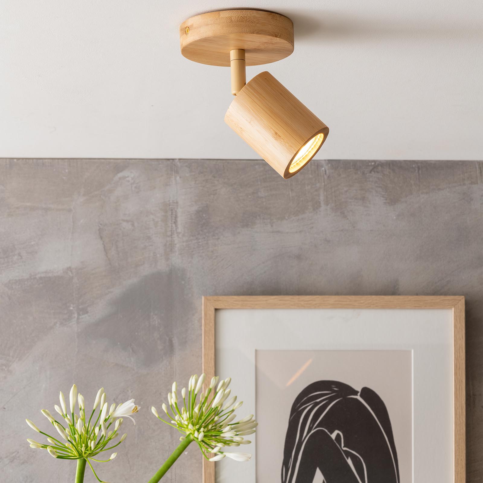 Dieser Röhren-Gelenk-Deckenstrahler (aus naturbelassenem oder schwarz bzw. rot lackiertem Bambusholz) ist flexibel einstellbar dank eines Drehgelenks am Auslegerarm und eines Knickgelenks an der Strahlerröhre.