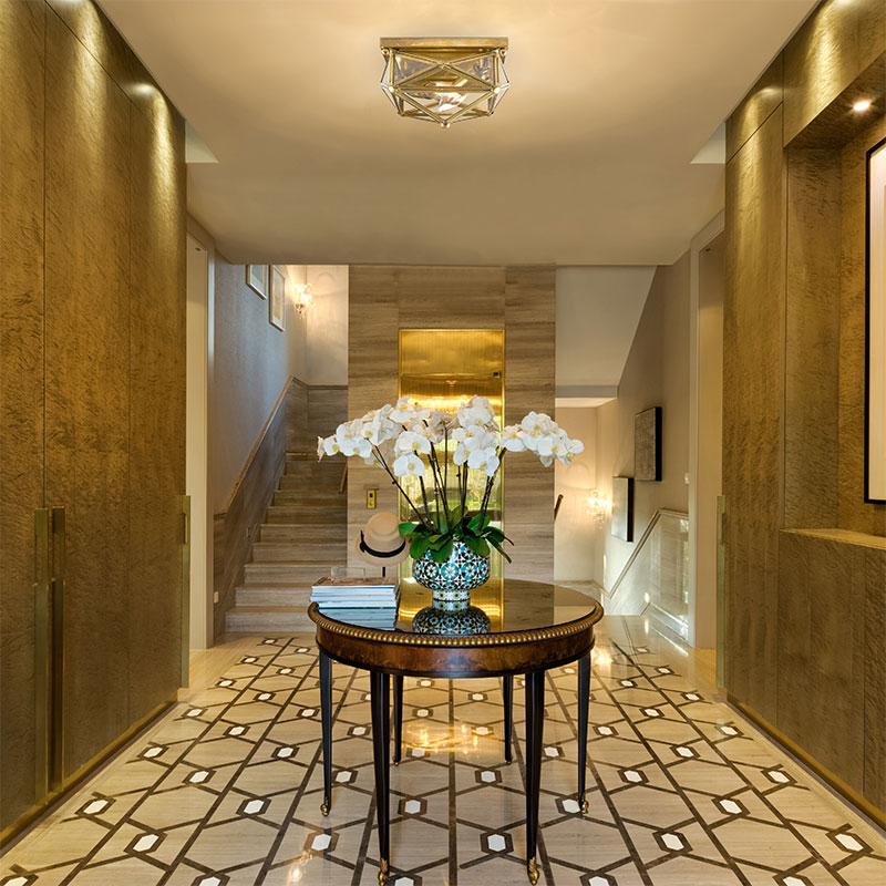 Geometrische Deckenleuchte mit verglastem Messing-Gehäuse, 3 Größen