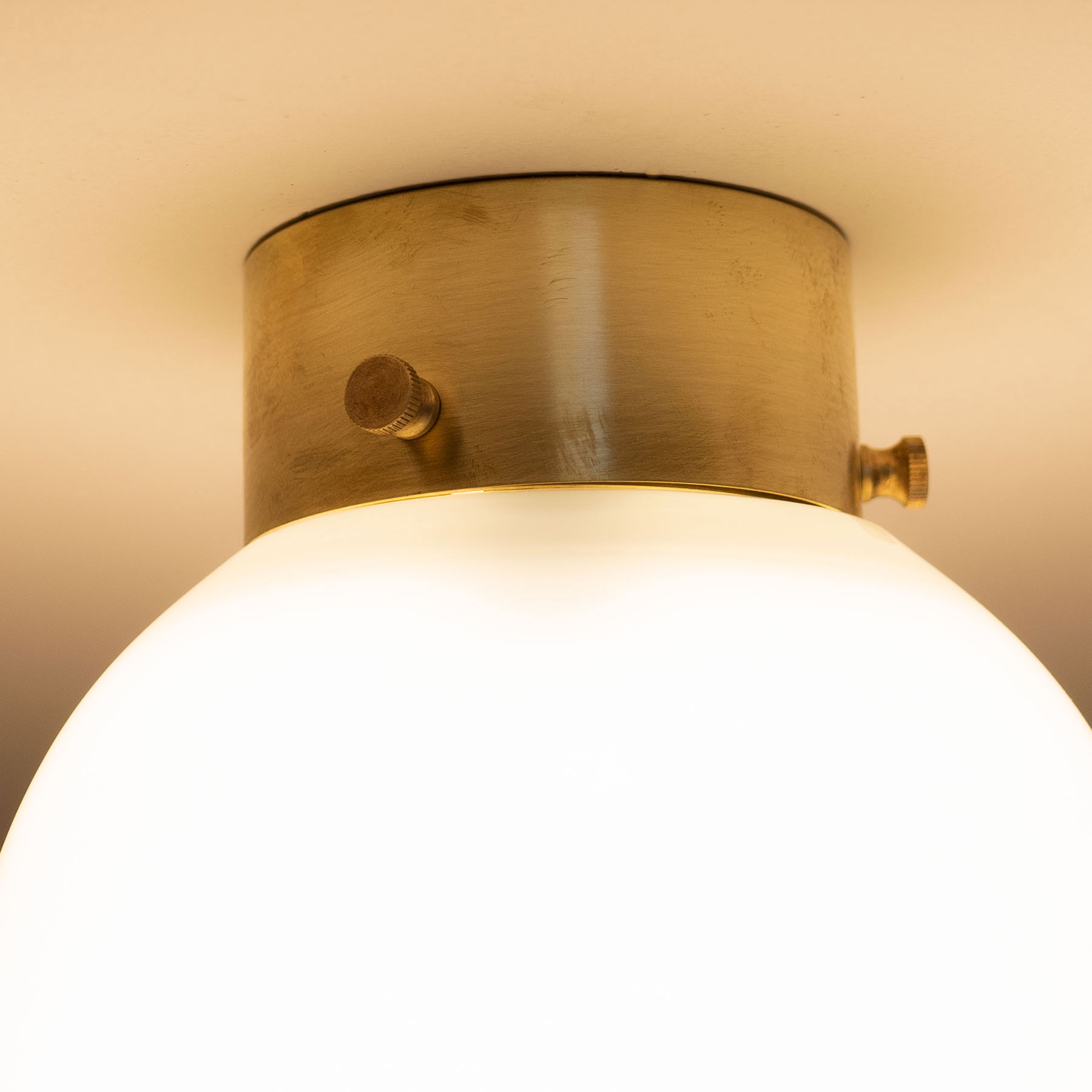 Glaskugel-Deckenleuchte, Design in Messing, 20 cm