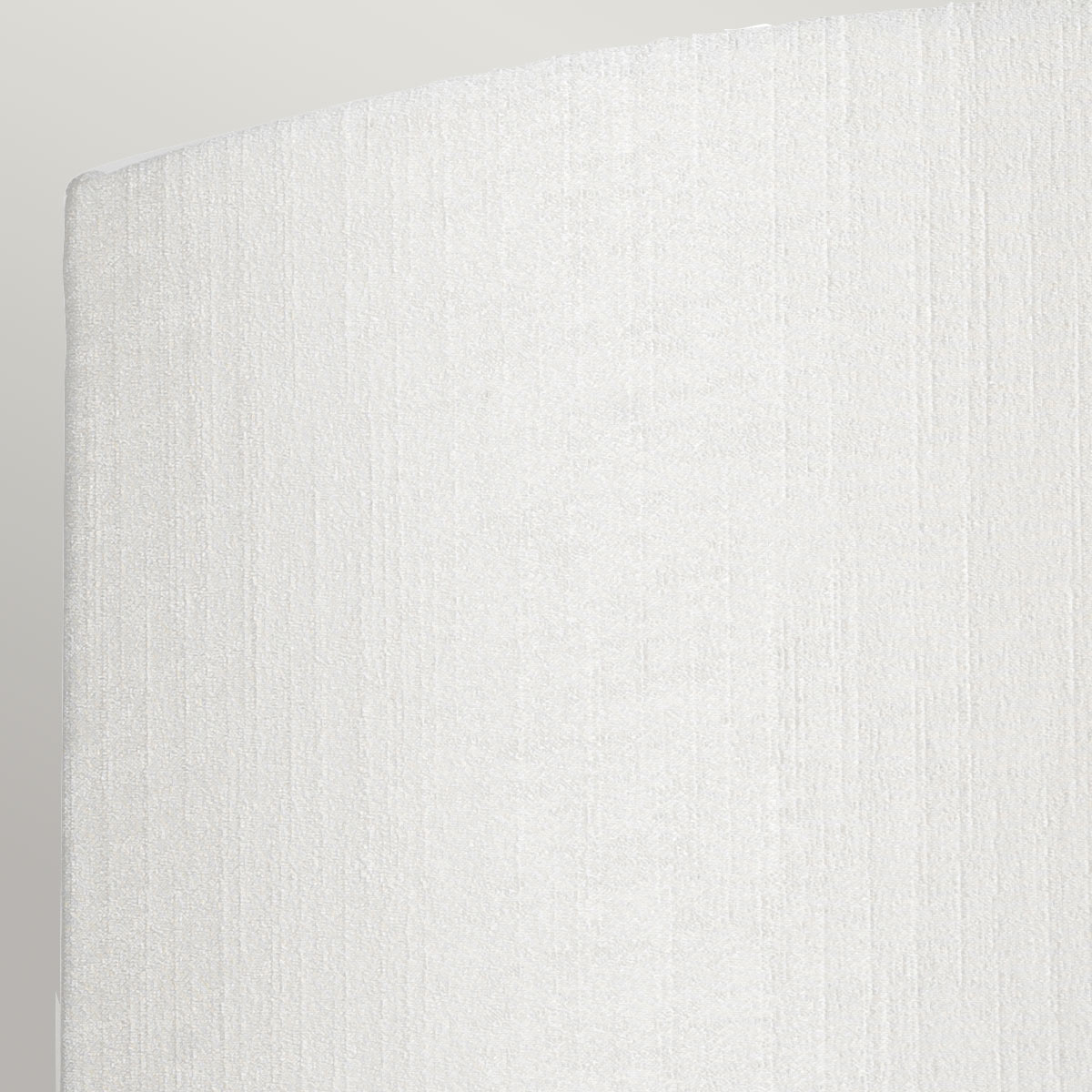 Ein großer Wandfluter, der mit einem elfenbeinfarbenem Stoffschirm und zwei E27-Brennstellen für viel warmes Licht sorgt. Die Rückplatte hat eine polierte Chromoberfläche.