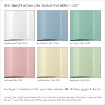 Wie bei allen Leuchten aus dem Hause Bolich sind weitere Farben Ihrer Wahl (nach RAL-Tabelle) als Hochglanz-Pulverbeschichtung gegen Aufpreise möglich.