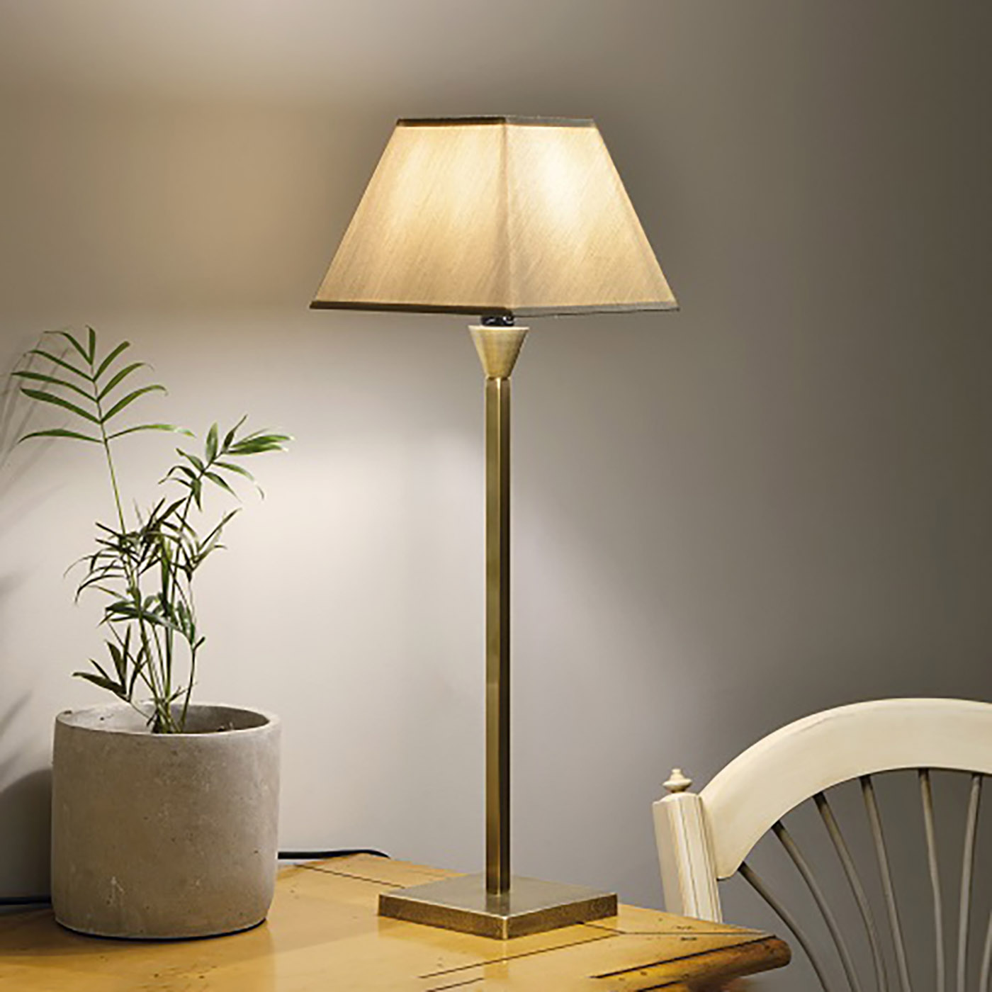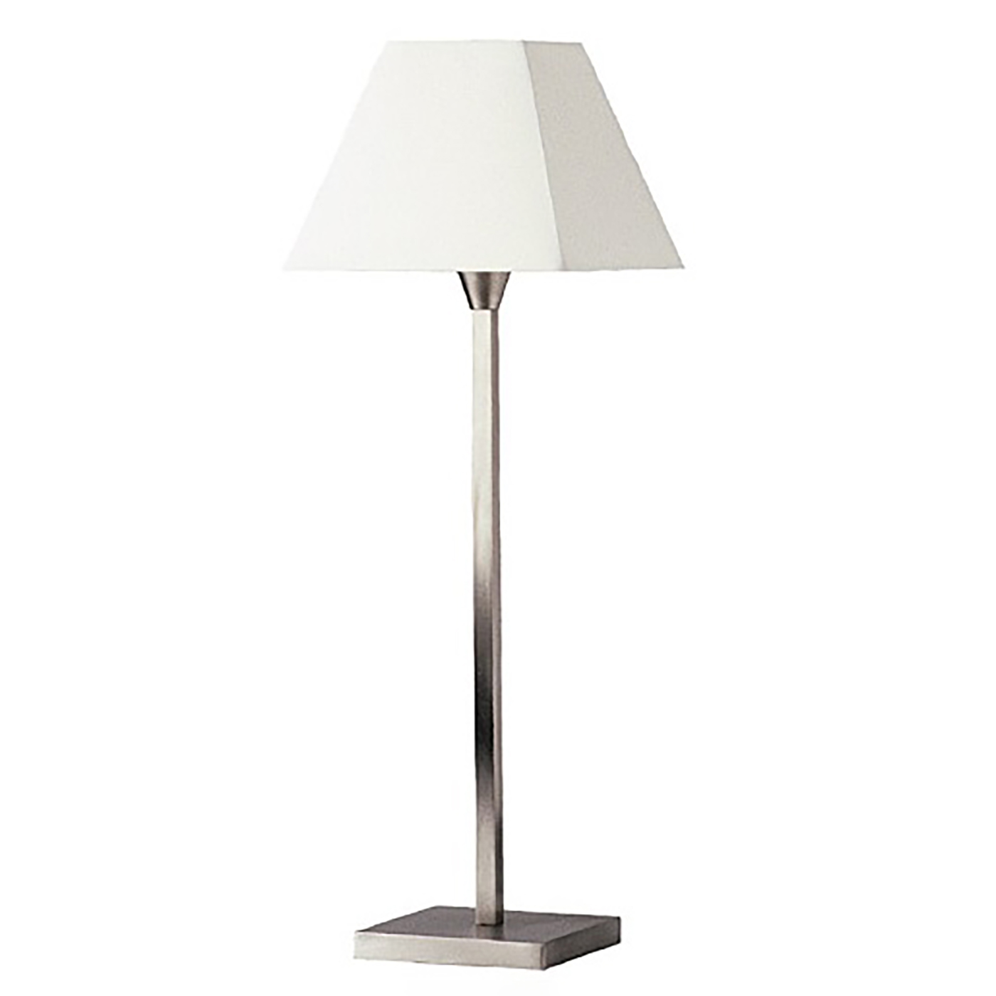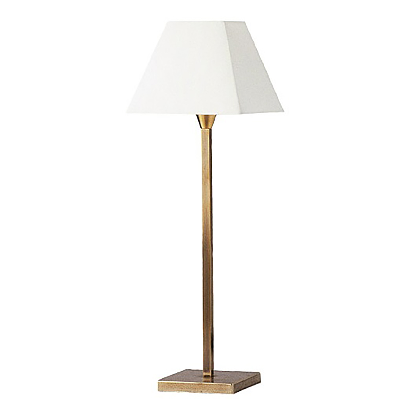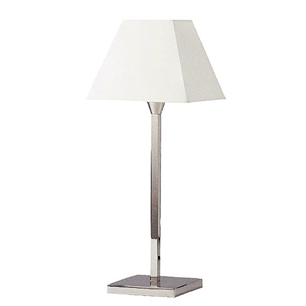 Diese klassische Tischleuchte in schlichtem und zeitlosem Design fügt sich überall harmonisch ein. Die Leuchte verfügt über einen rechteckigen Sockel aus Messing und ist in drei Größen erhältlich.