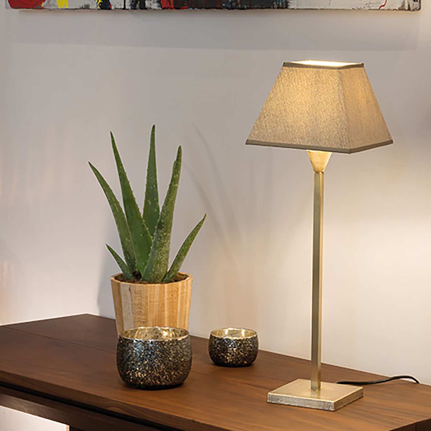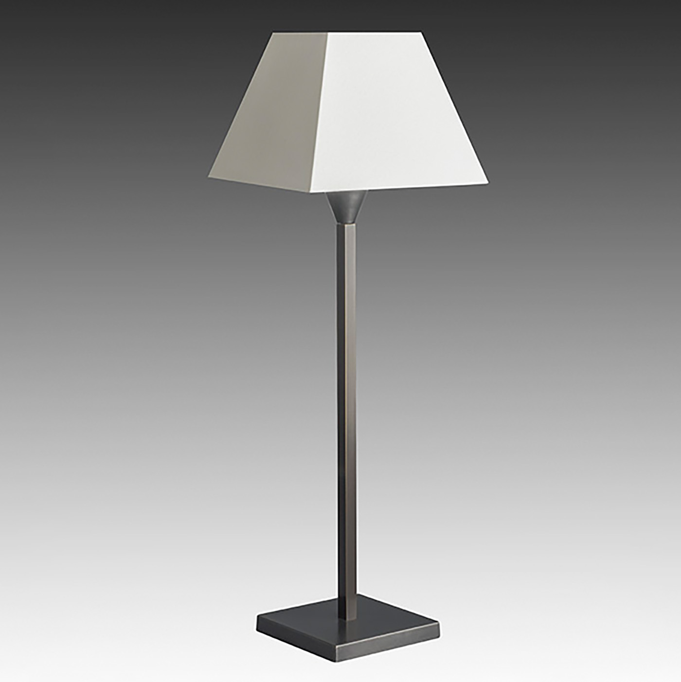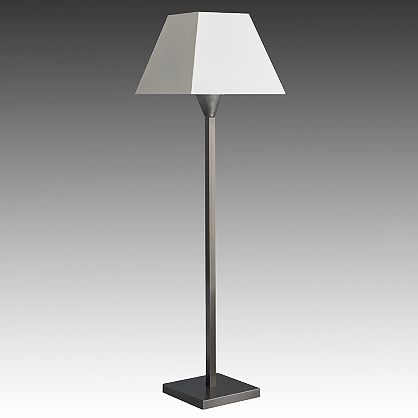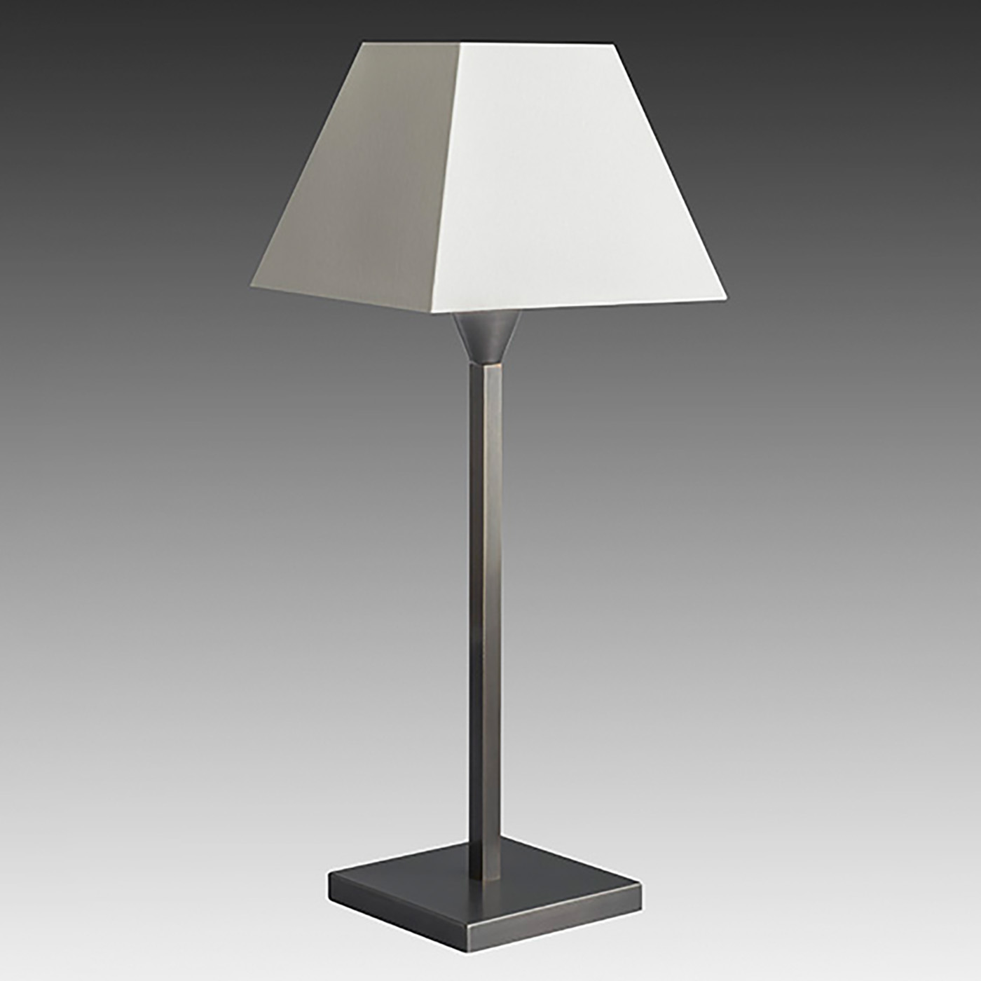 Diese klassische Tischleuchte in schlichtem und zeitlosem Design fügt sich überall harmonisch ein. Die Leuchte verfügt über einen rechteckigen Sockel aus Messing und ist in drei Größen erhältlich.