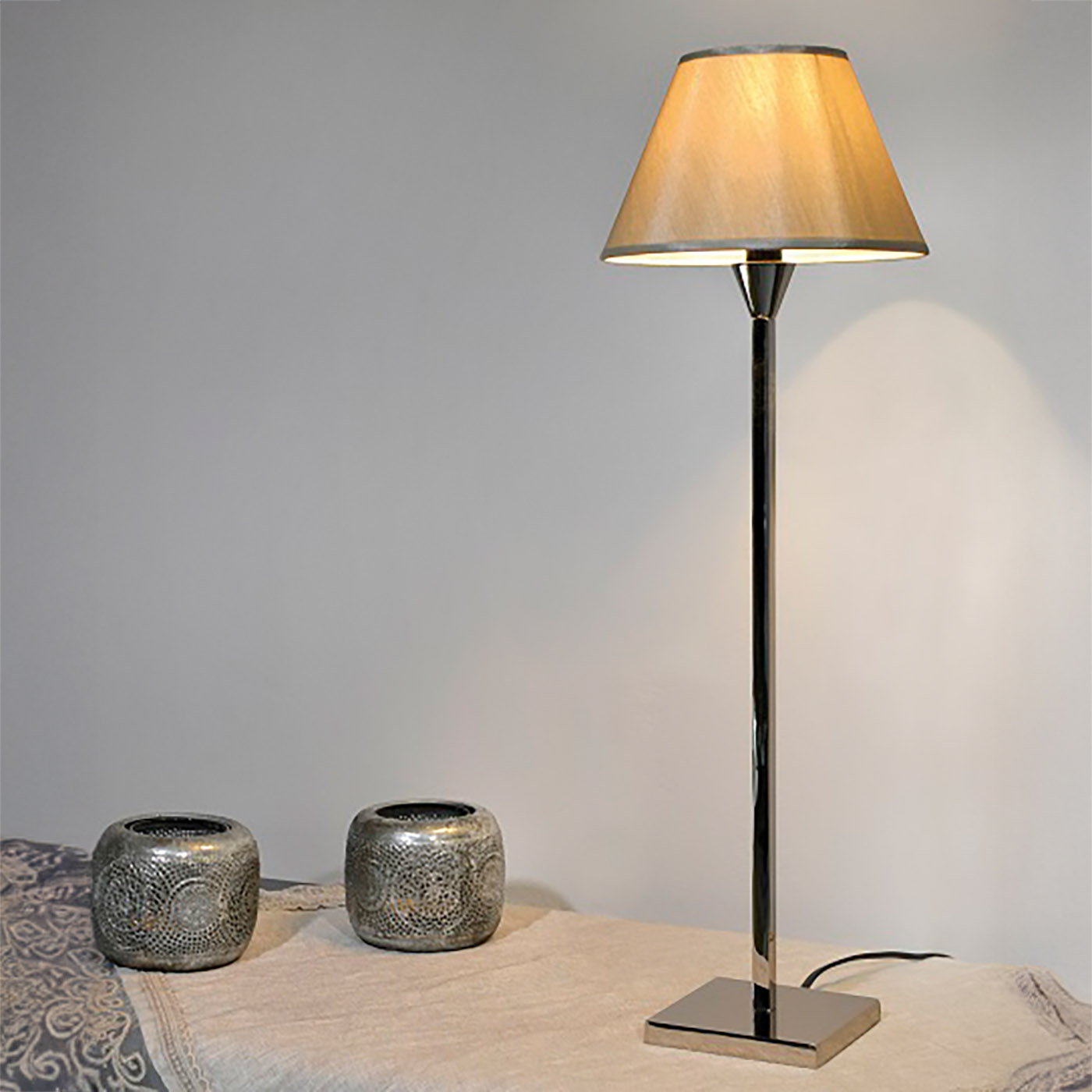 Klassisch schlichte Tischleuchte mit Textilschirm, drei Größen L122