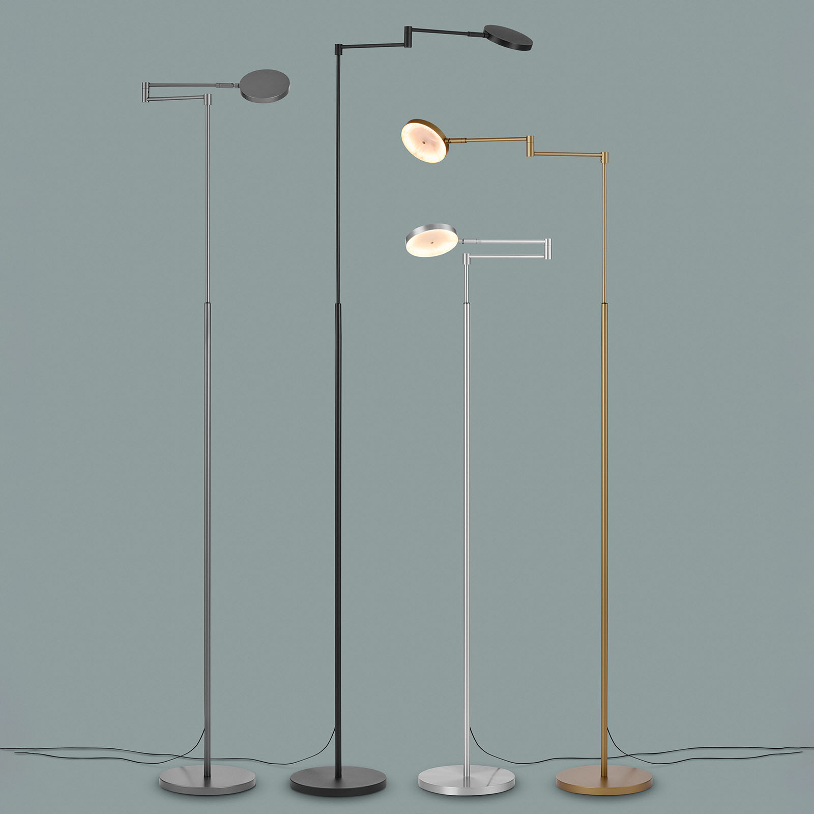 Nicht nur das filigrane Design, sondern auch die außergewöhnliche Lichtleistung machen diese hochklassig gefertigte Gelenk-Leseleuchte bzw. Stehleuchte zu einer Besonderheit. Der an Gelenken sowie in der Höhe verstellbare Ausleger mit rundem Leuchtenkopf strahlt mit 1000 Lumen sowie einem Farbwiedergabe-Index (CRI) von über 90. Er kommt damit dem Ideal von natürlichem Sonnenlicht sehr nahe.