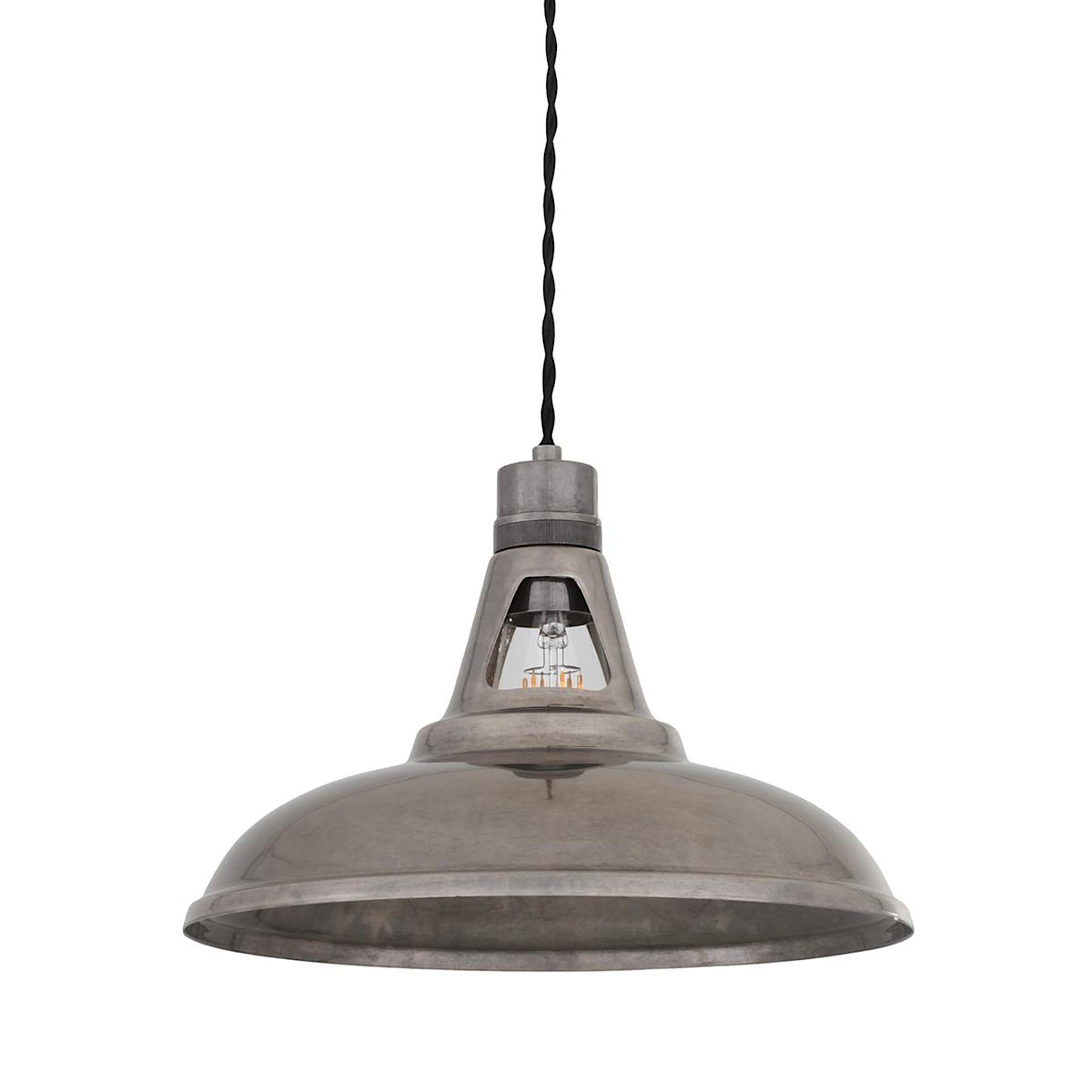 Die Formensprache dieser handgefertigten, nostalgischen Messing-Hängelampe entspricht der funktionalen Gestaltung traditioneller Industrieleuchten. Der gewölbte Messing-Schirm wird in der irischen Manufaktur in handwerklicher Drücktechnik hergestellt.
