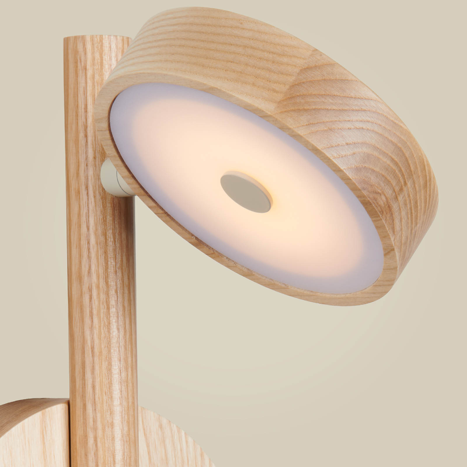 Diese funktionale und minimalistische Wandleuchte verfügt über einen einstellbaren Leuchtenkopf mit integriertem 4W LED–Modul am kurzen Auslegerarm. Das organische Design, unter Verwendung von naturbelassenem (oder lackiertem) Eschenholz, sorgt für Gemütlichkeit in jedem Wohnraum.