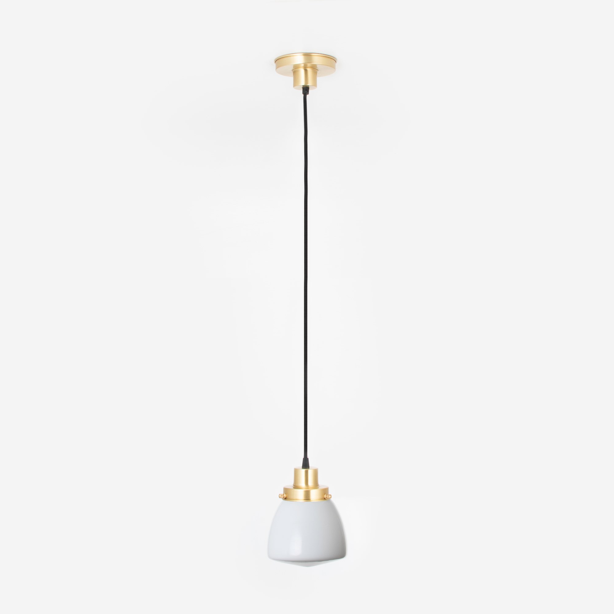 Pendelleuchte mit weißem Opalglas und Messingteilen