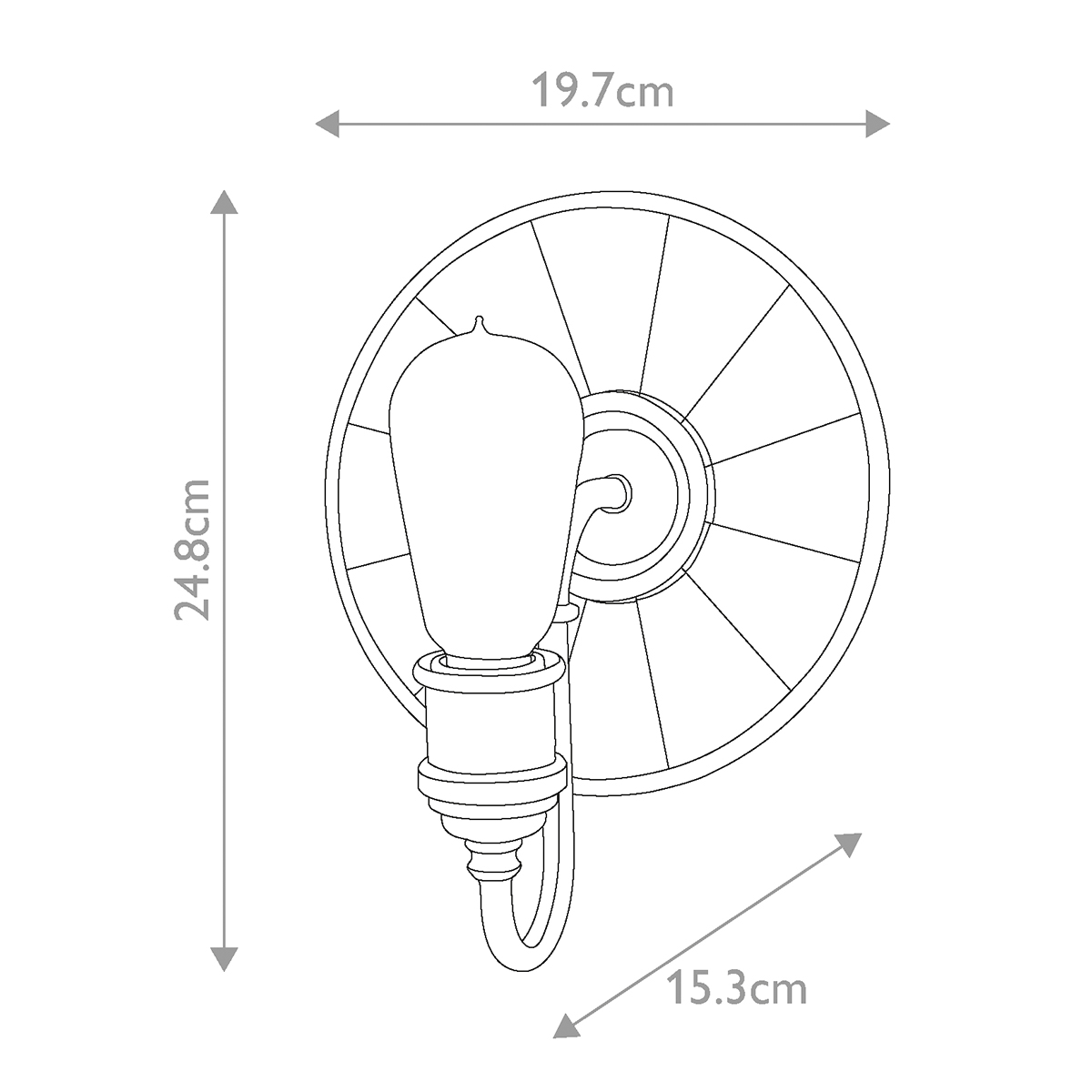 Ein Spiegel mit Patina dient als Reflektor bei dieser kleinen Wandleuchte, und ein Leuchtmittel im