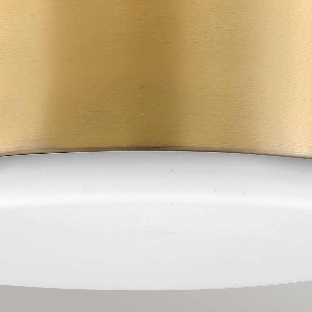 Diese runde Deckenleuchte aus messingfarbenem Stahl sorgt für gute Ausleuchtung und eine modern-ruhige Atmosphäre. Der hochwertige geätzte Opalglasdiffusor hat einen etwas kleineren Durchmesser und verleiht der Leuchte dadurch eine schlanke, schicke Silhoutte.