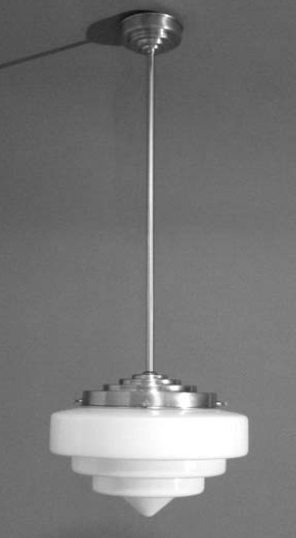 Aus den designverliebten Niederlanden kommen diese Messingleuchten im Stil des frühen Art déco (kurz für französisch für art décoratif = dekorative Kunst). Durch ihr zeitloses Design fügen sich diese Leuchten sowohl in historische wie moderne Umgebung hervorragend ein. Kennzeichnend sind die – bei aller Liebe zum Detail – klaren, puristischen Designs wie beispielsweise die getreppten Gläser und Glashalter; Formen, die sich auch in zeittypischer Architektur der 1920er- und 1930er-Jahre zeigen, wie beispielsweise beim Chrysler Building in New York. Hierin übersetzt sich die Ausdrucksweise der in den 1920er-Jahren aufkommenden geometrisch-abstrakten Malerei (Wassily Kandinsky, Piet Mondrian etc.) in Architektur und Design.