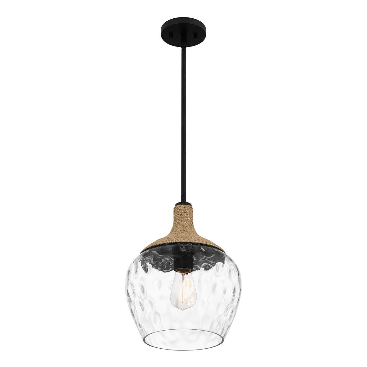Strukturglas-Pendelleuchte mit Hanfseil-Detail