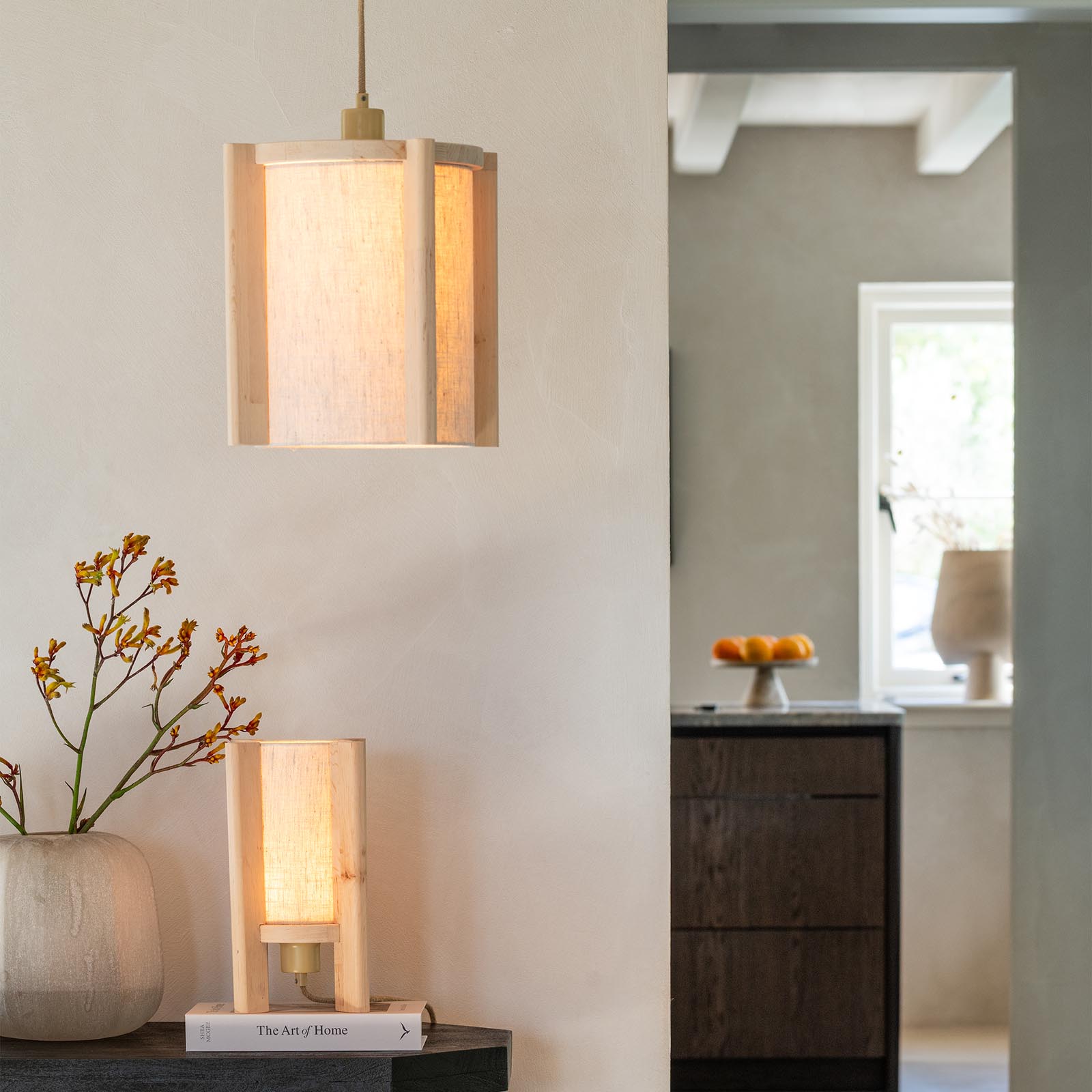 Diese organische Tischleuchte, unter Verwendung von naturbelassenem Buchenholz, sorgt für Gemütlichkeit in jedem Wohnraum.