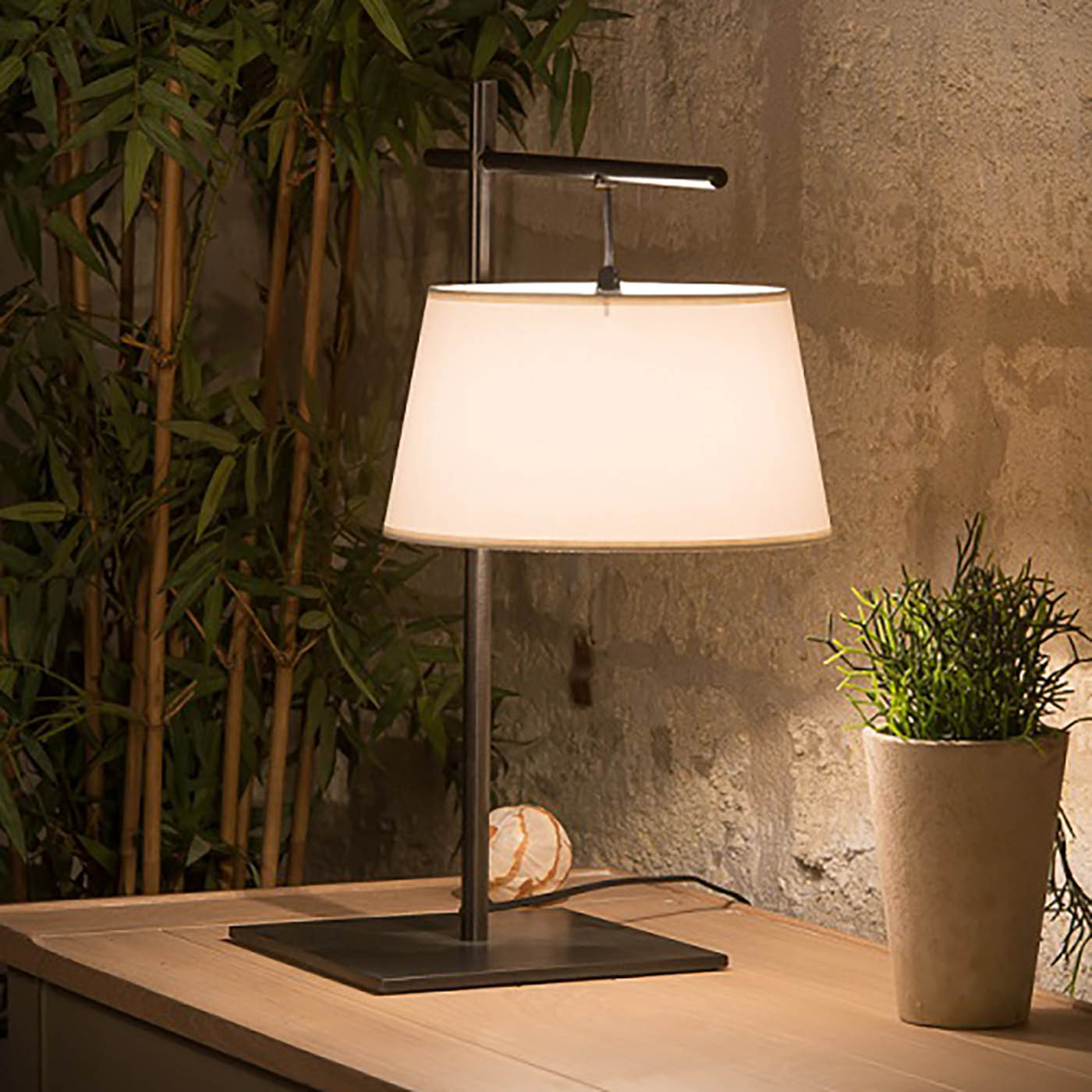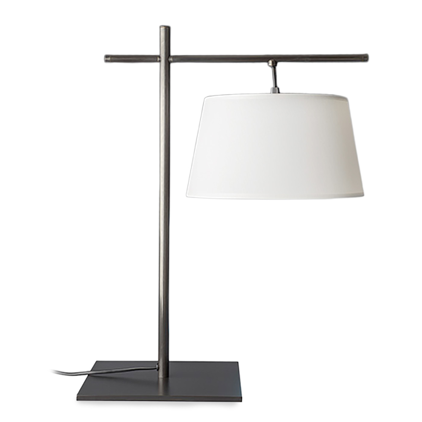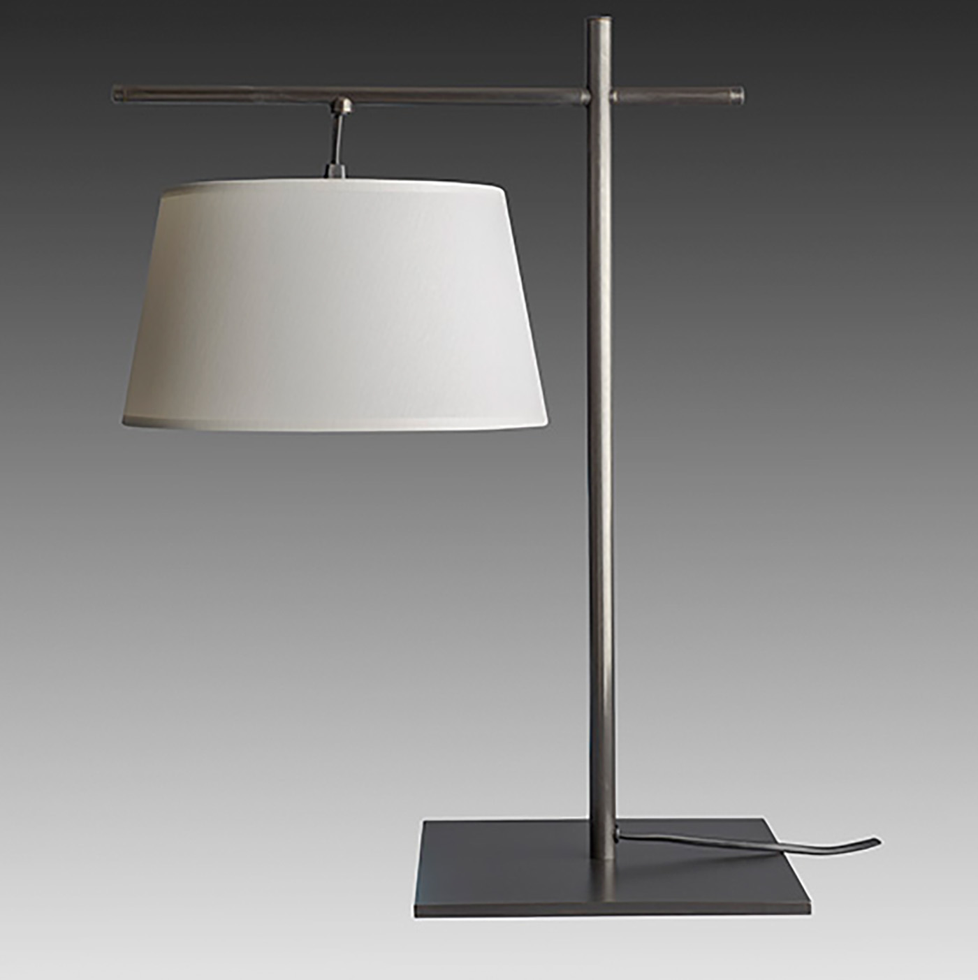 Tischleuchte mit rundem, hängenden Stoffschirm am Ausleger L141