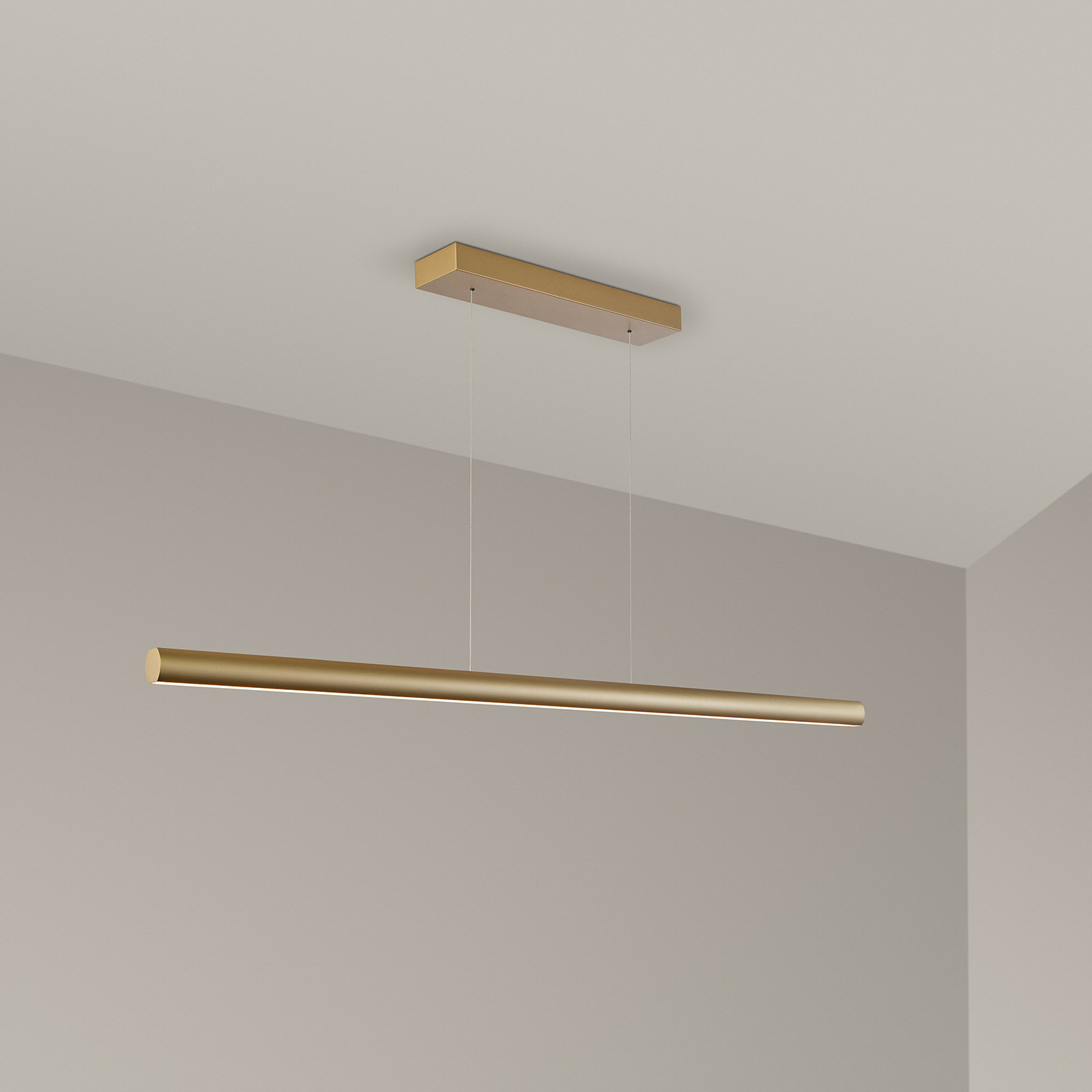 Die filigrane Balken-Hängeleuchte VIONA MUETA von Holtkötter überzeugt durch Gesten-Steuerung, Memory-Funktion, einer unsichtbaren Höhenverstellung und nicht zuletzt durch hervorragendes Licht.