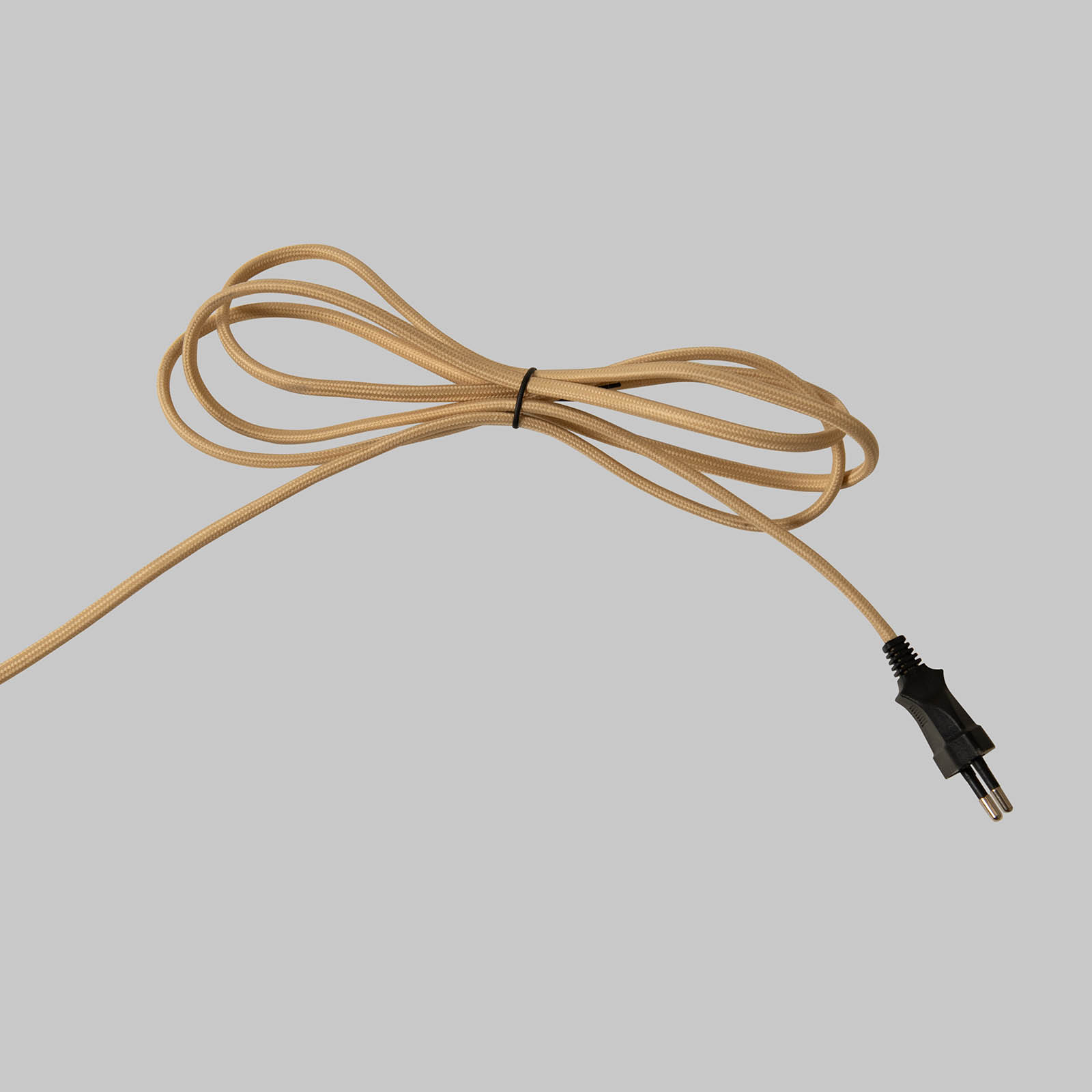 Mit Textilkabelzuleitung (200 cm) und Stecker. Auf dem runden Wandteil befindet sich ein Wippschalter.