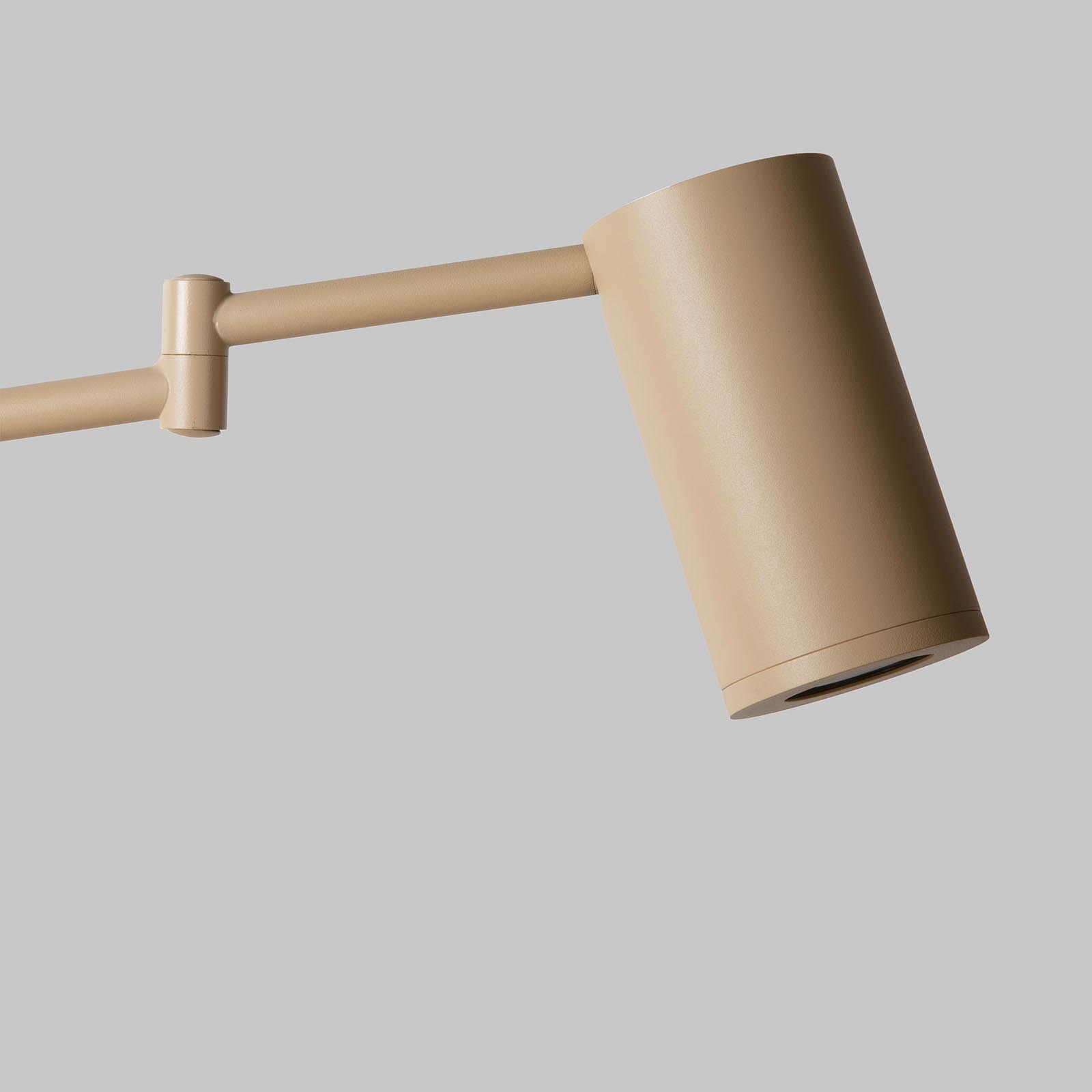 Im schlichten, modernen Design dieser Wandleuchte verbirgt sich alle wünschenswerte Funktionalität: Mittels dreier unauffälliger Drehgelenke lässt sich der kurze Ausleger-Wandarm zu seitlich schwenken und der Schirm kann geneigt werden.