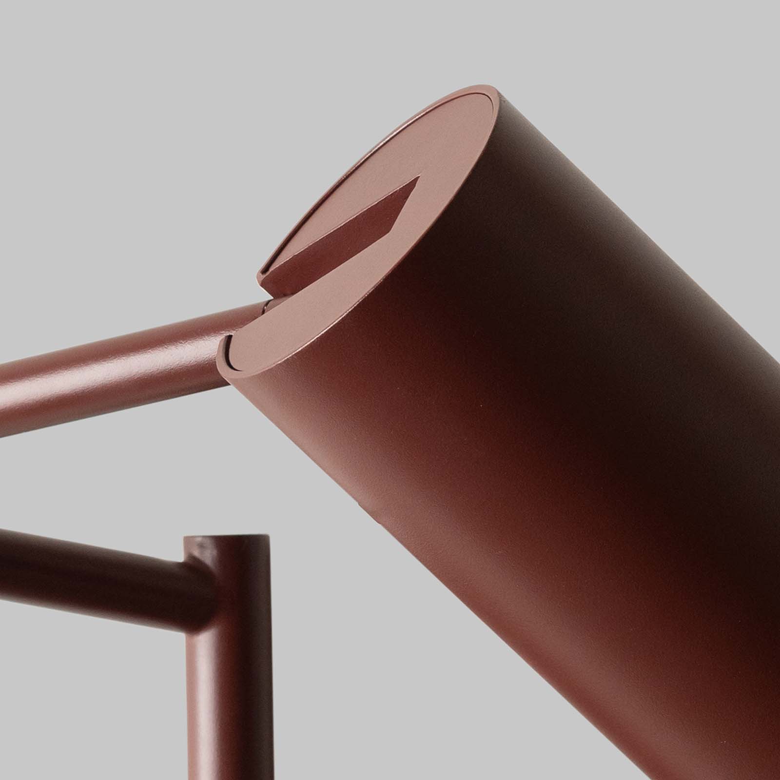 Die Leuchte ist erhältlich in den Farben Beige („Sand“) und Burgunderrot.