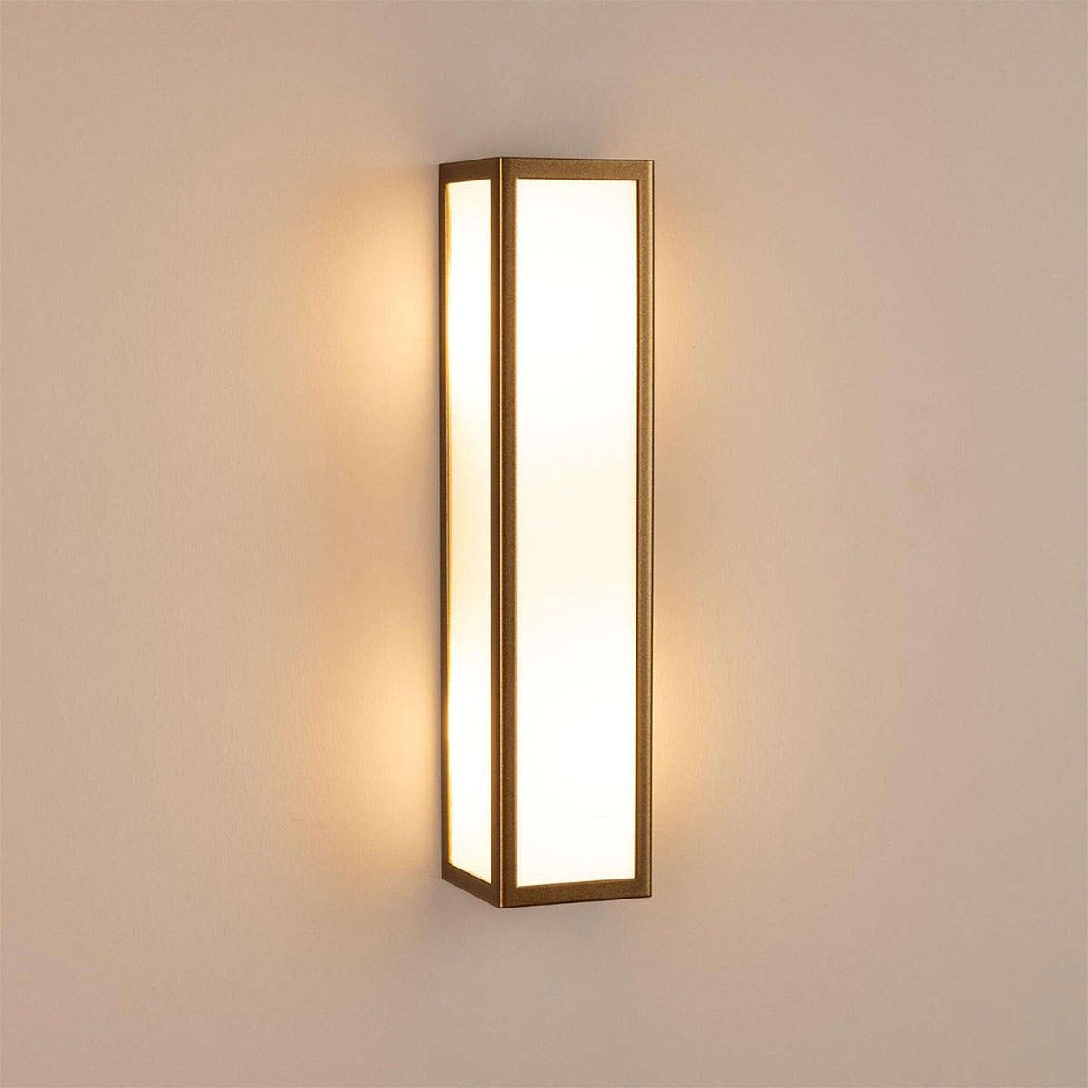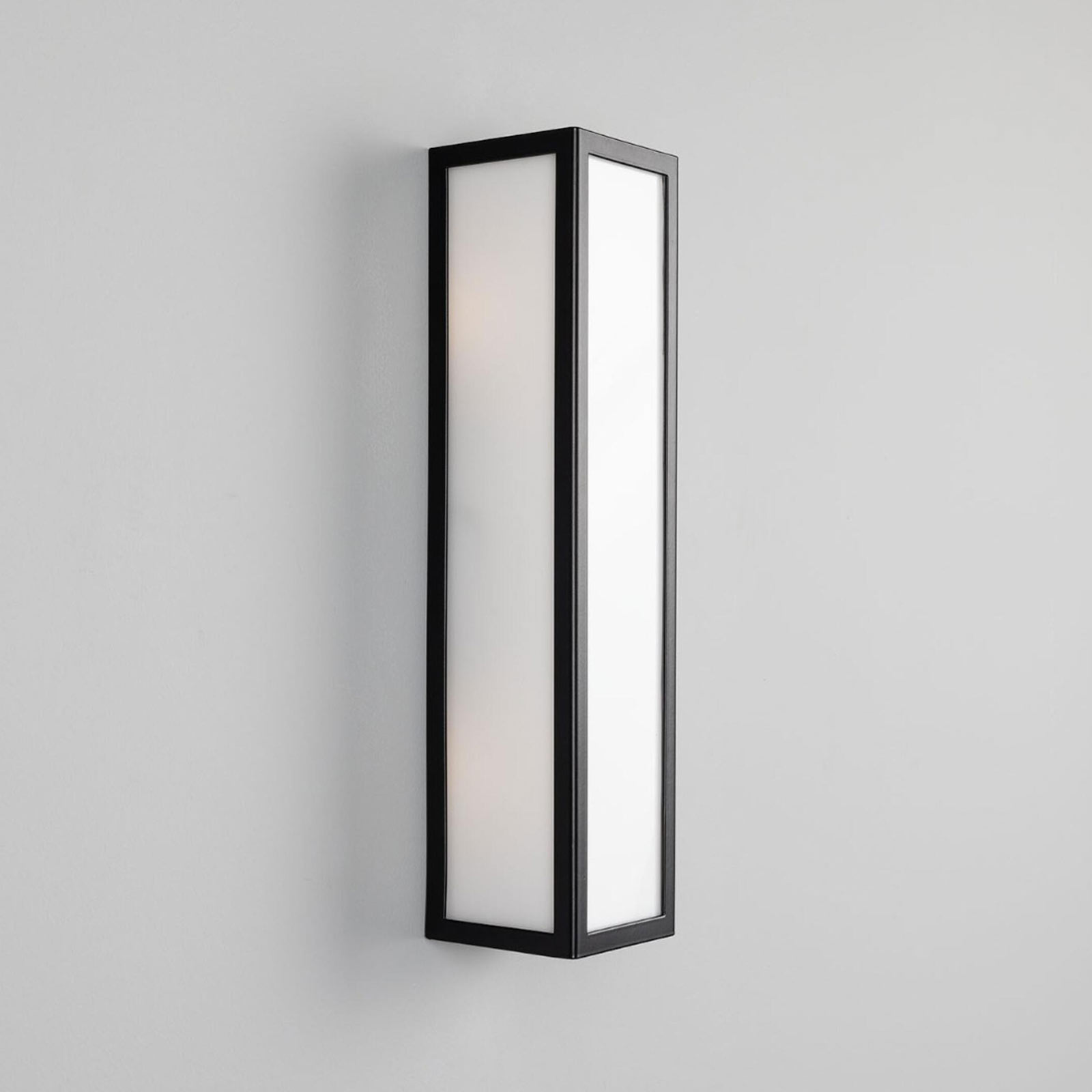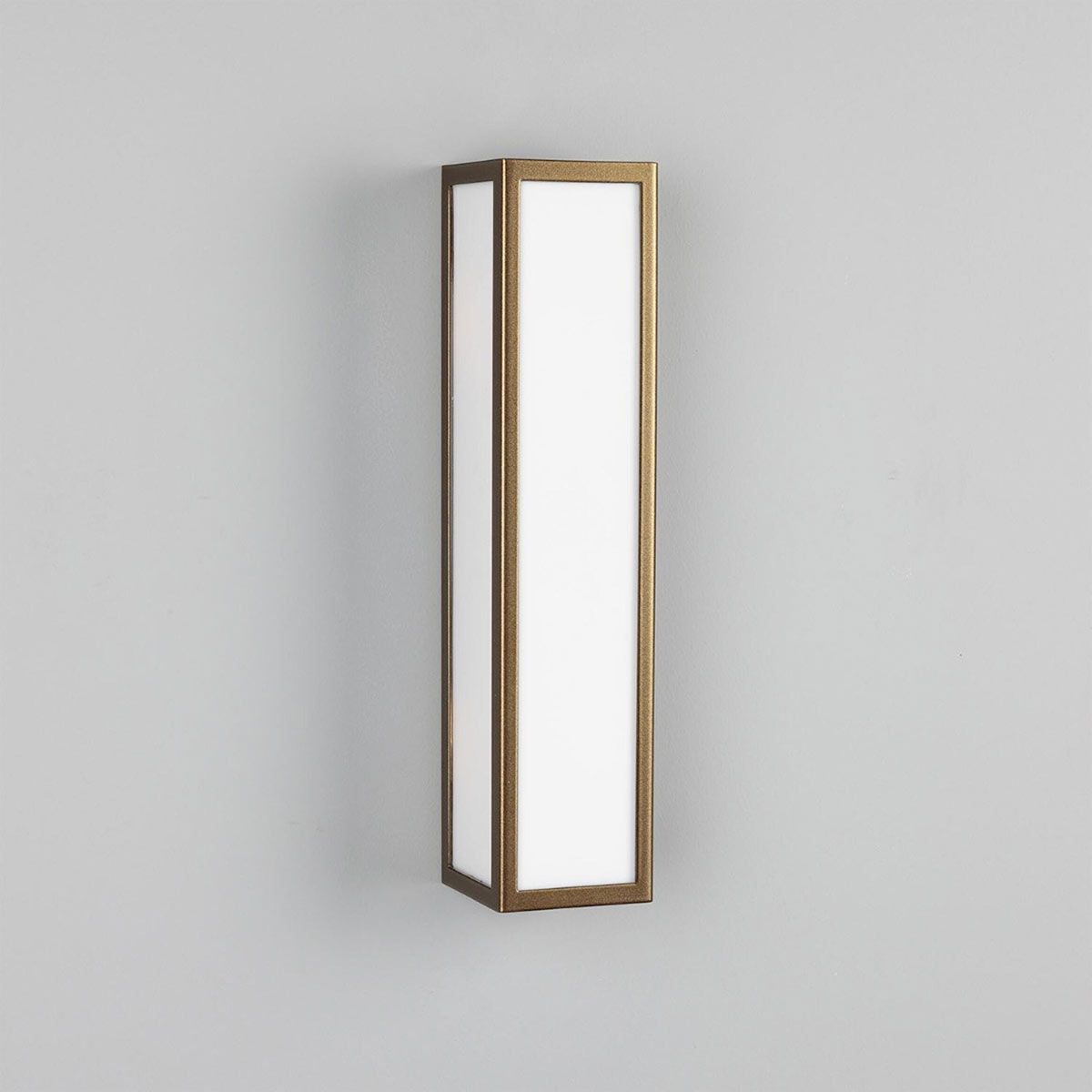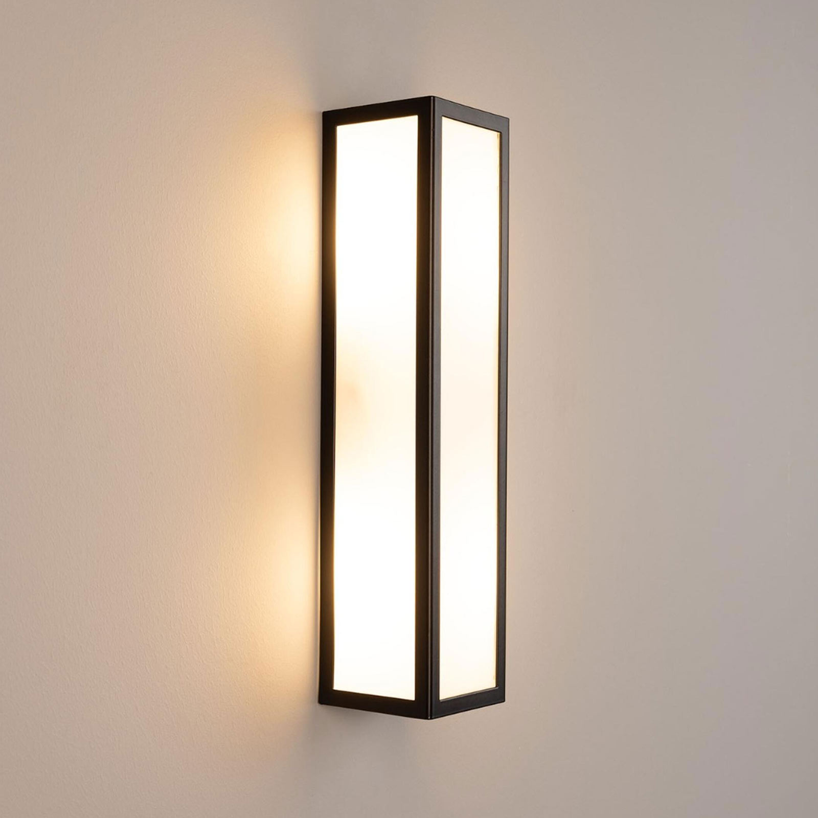 Dieser vertikale Leuchtentyp ist als klassische Beleuchtung im Bad, z. B. paarweise neben dem Spiegel verbreitet, kann aber auch als sanfte Akzentbeleuchtung eingesetzt werden. Die opalen Acrylglasscheiben der „Kasten“-Wandleuchte streuen das Licht sanft und gleichmäßig.