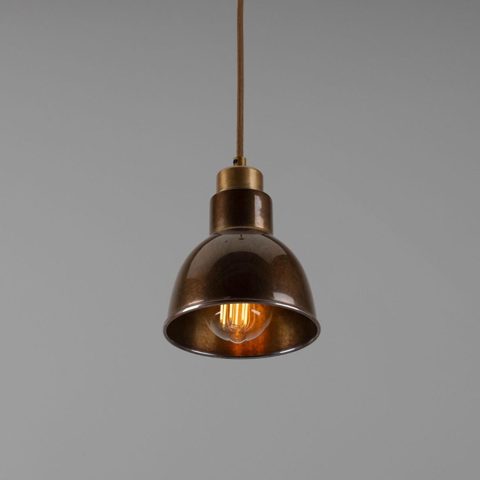 Diese vielseitig einsetzbare, kleine Pendelleuchte mit Messingschirm kann – je nach Oberflächen-Ausführung – einen eher eleganten oder eher rustikal-nostalgischen Industriestil-Charakter annehmen.