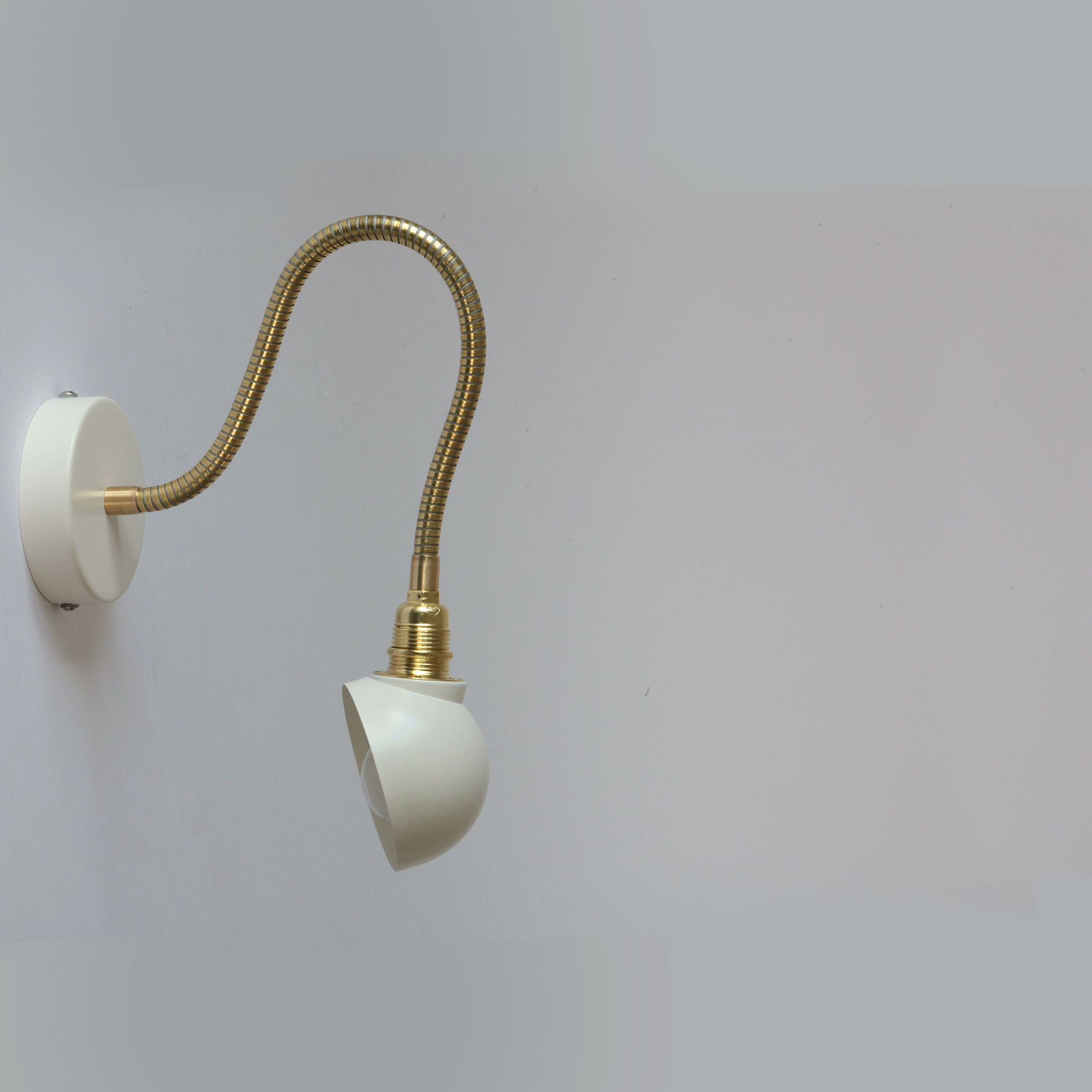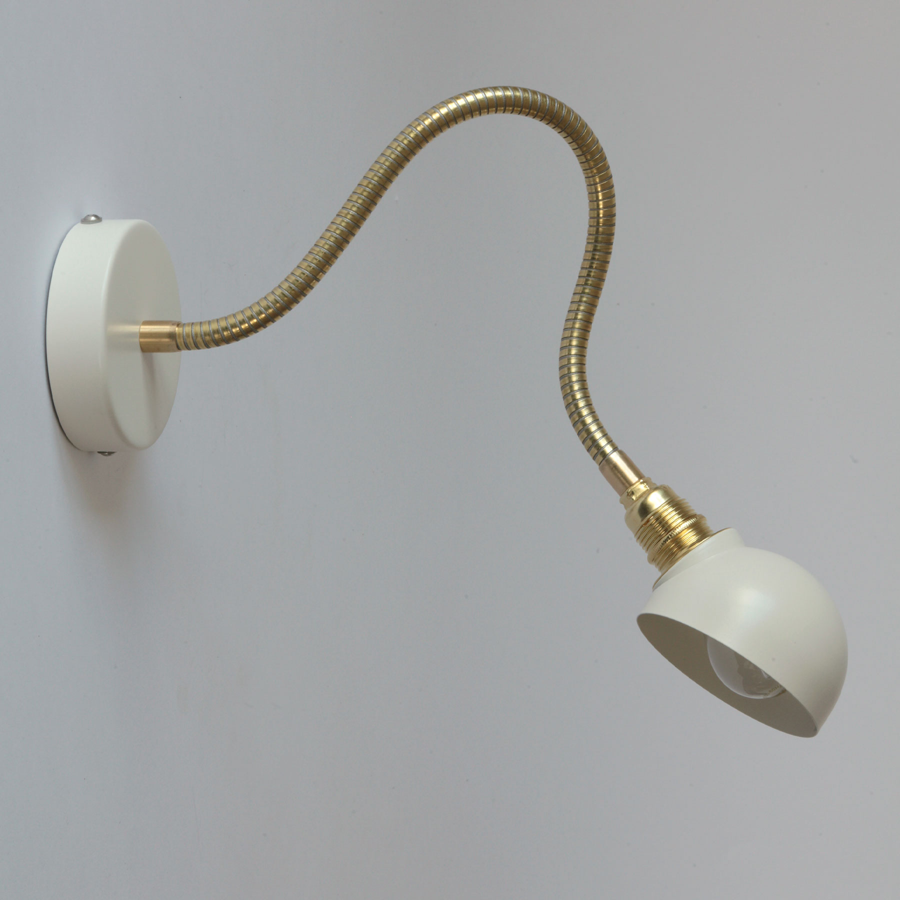 Material: Flexarm aus Messing, Reflektor und Wandteil aus Stahl cremeweiß lackiert