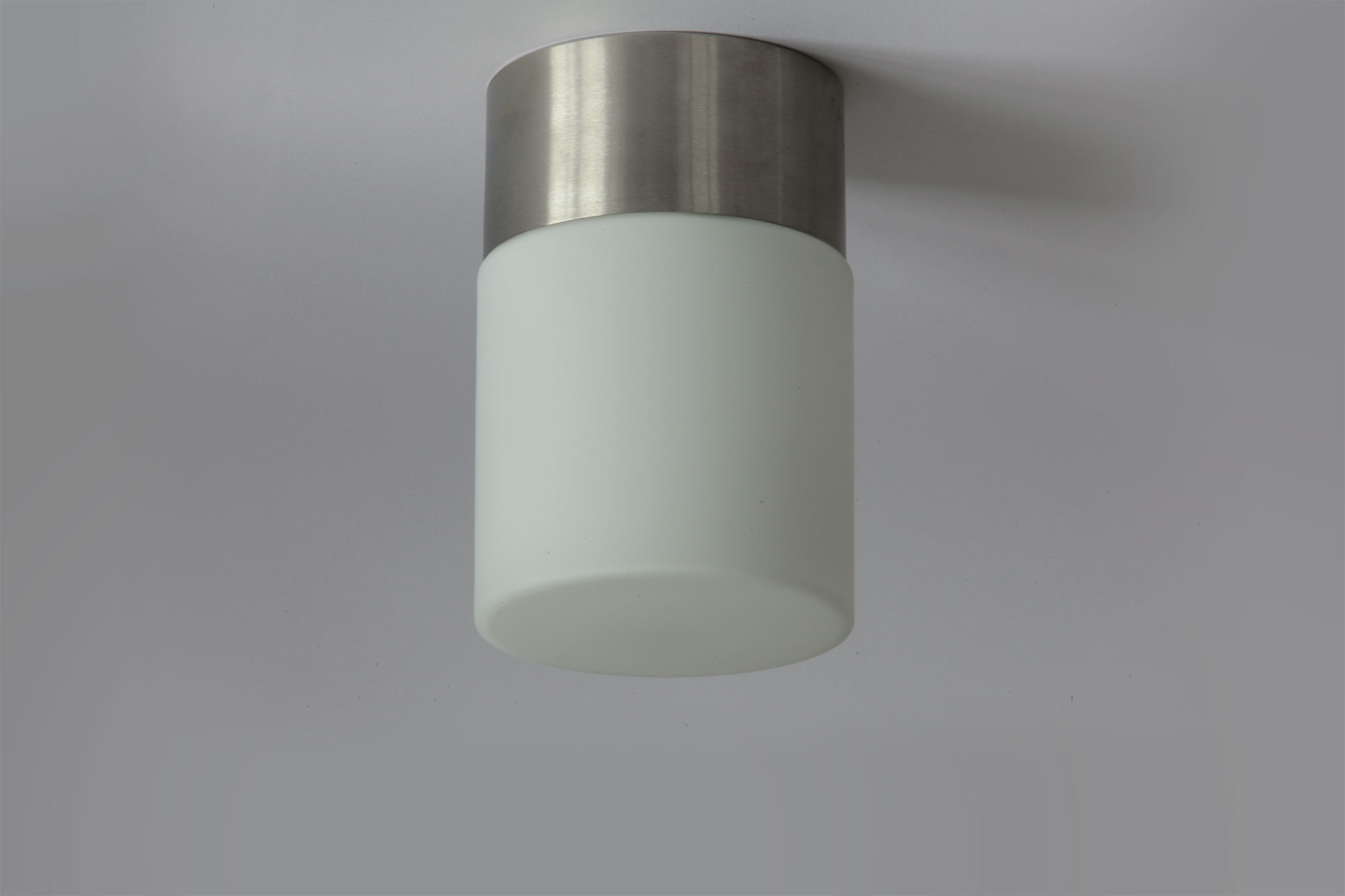 Mit ihrer geometrischen Zylinder-Grundform und der angenehmen Lichtwirkung von Opalglas ist diese kompakte Deckenleuchte eine zeitlose und praktische Lichtquelle für Wohnräum, Flure und Treppenhäuser.