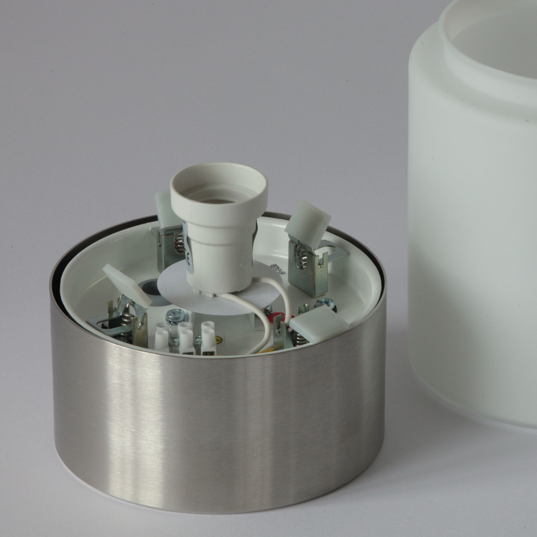 Material: Stahlblech pulverlackiert, Messing oder Edelstahl, Triplex-Opalglas samtig mattiert