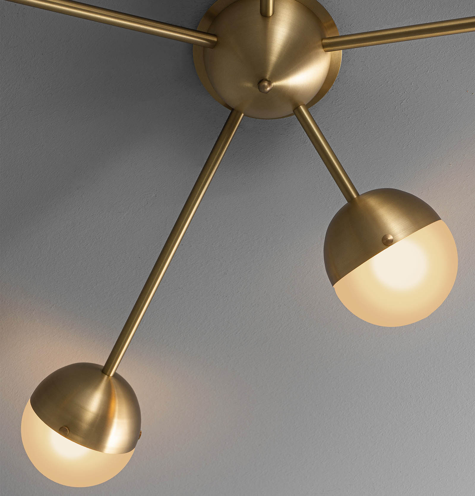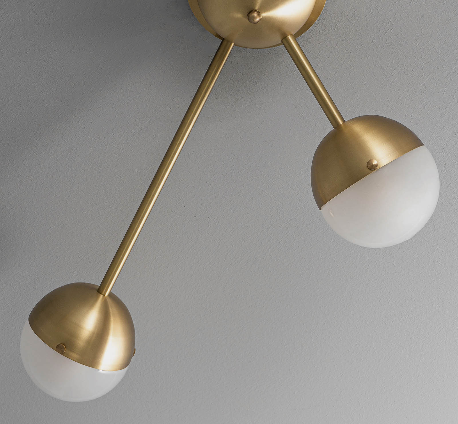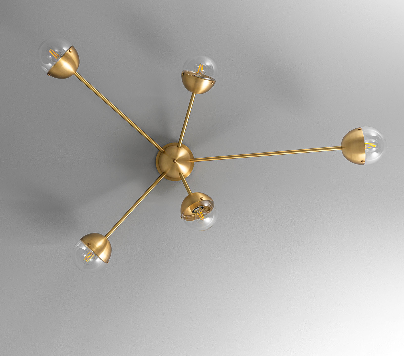 Since 2014, this lighting manufacturer has caused a sensation not only in its home country but also among US designers with its timeless and unusual designs. The two young designers and founders of the company, Dominique Sente from Belgium and Rudi Nijssen from the Netherlands, say that they create "forms influenced by our passion, which seek and find a balance between technical and aesthetic solutions". Handmade in Europe, the lamps are made of solid brass. The glass spheres are made of very high-quality hand-blown borosilicate glass, thin and light like soap bubbles, but resistant and strong like laboratory glass. This extraordinary glass, also called Jena glass in this country, ensures both a stylish presence in a classically modern ambience and pleasant room lighting. Most of the swing lighting is compatible with dimmers and comes with extension rods so that it can be adapted to different room heights. On request, all Schwung lights can be made UL-listed 110–130 V.