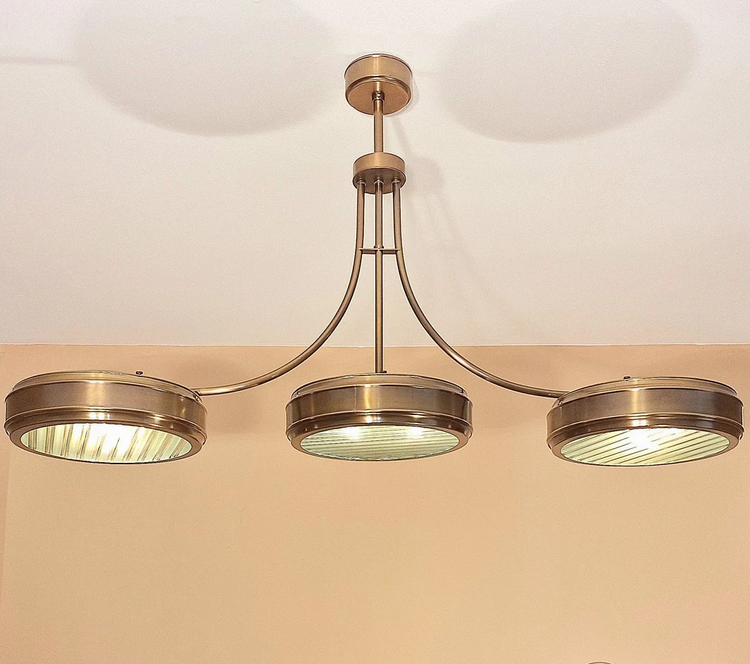 Brass Pendant Lamp with Ribbed Glass Panes