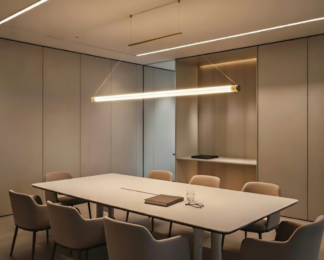 With its high-quality LED strips, it provides balanced lighting for the dining table, office or conference table.