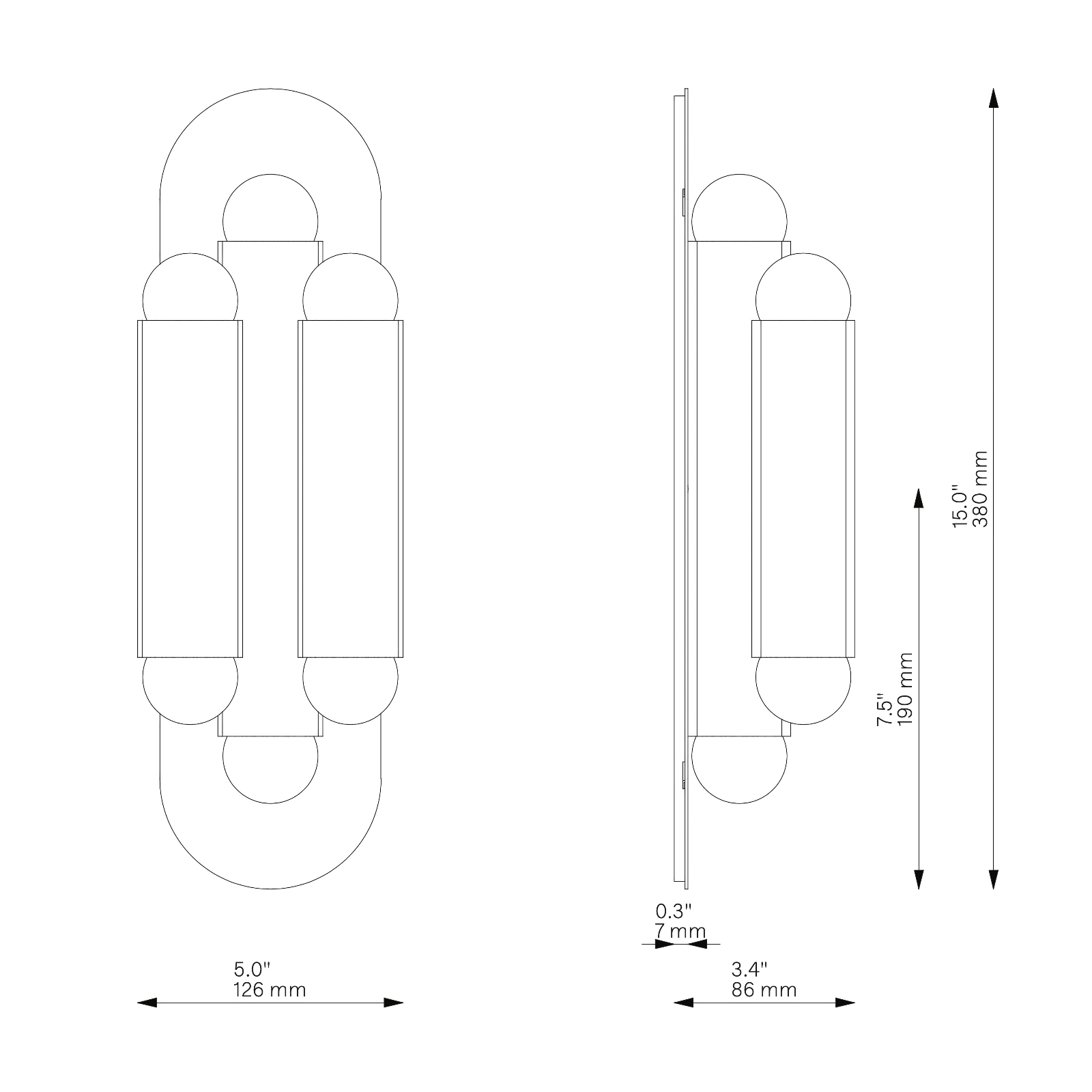 - Brass with dark "cannon iron" patina