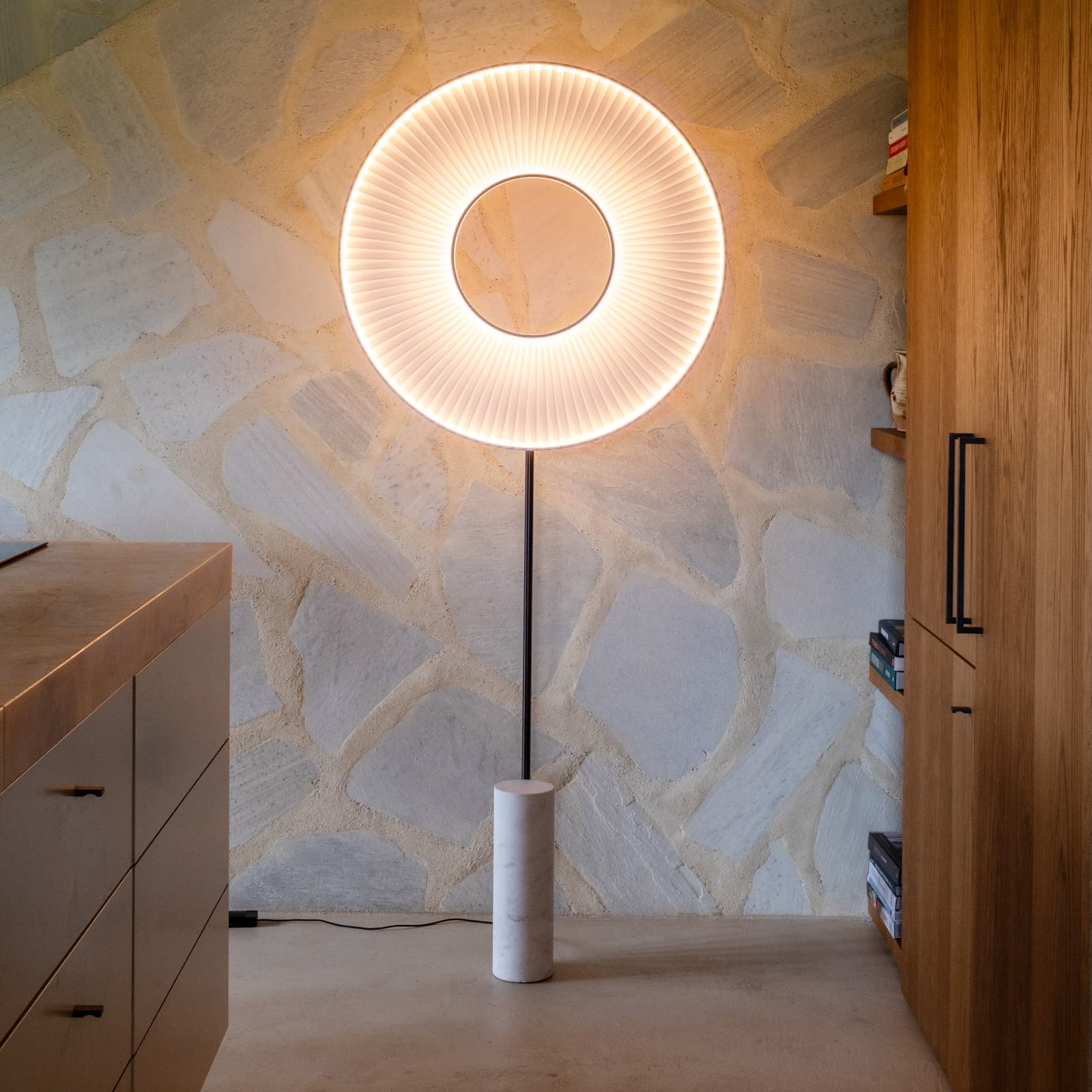 Große Stehleuchte IRIS aus Polyester-Taft und Marmor