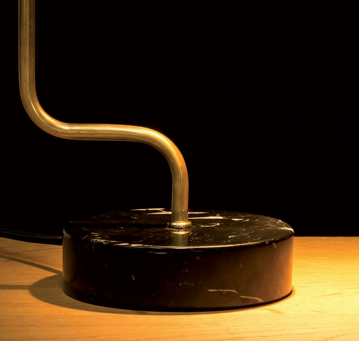 This elegant brass table lamp has a GU10 spotlight and a black marble base. It is handmade in Italy.