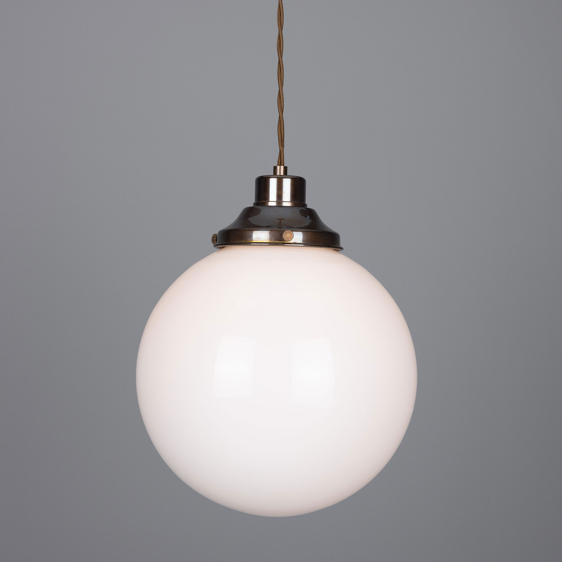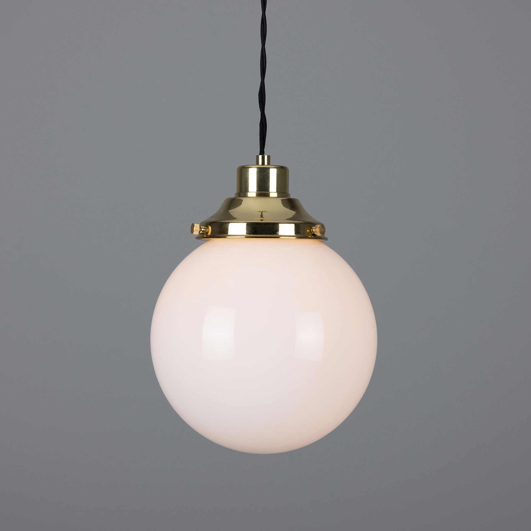 Material: Brass, opal glass sphere, two-strand twisted fabric cable