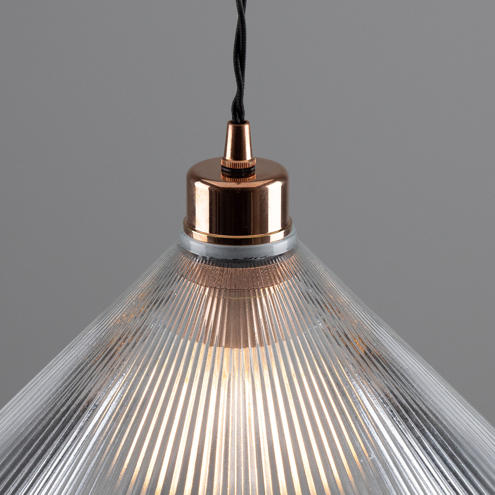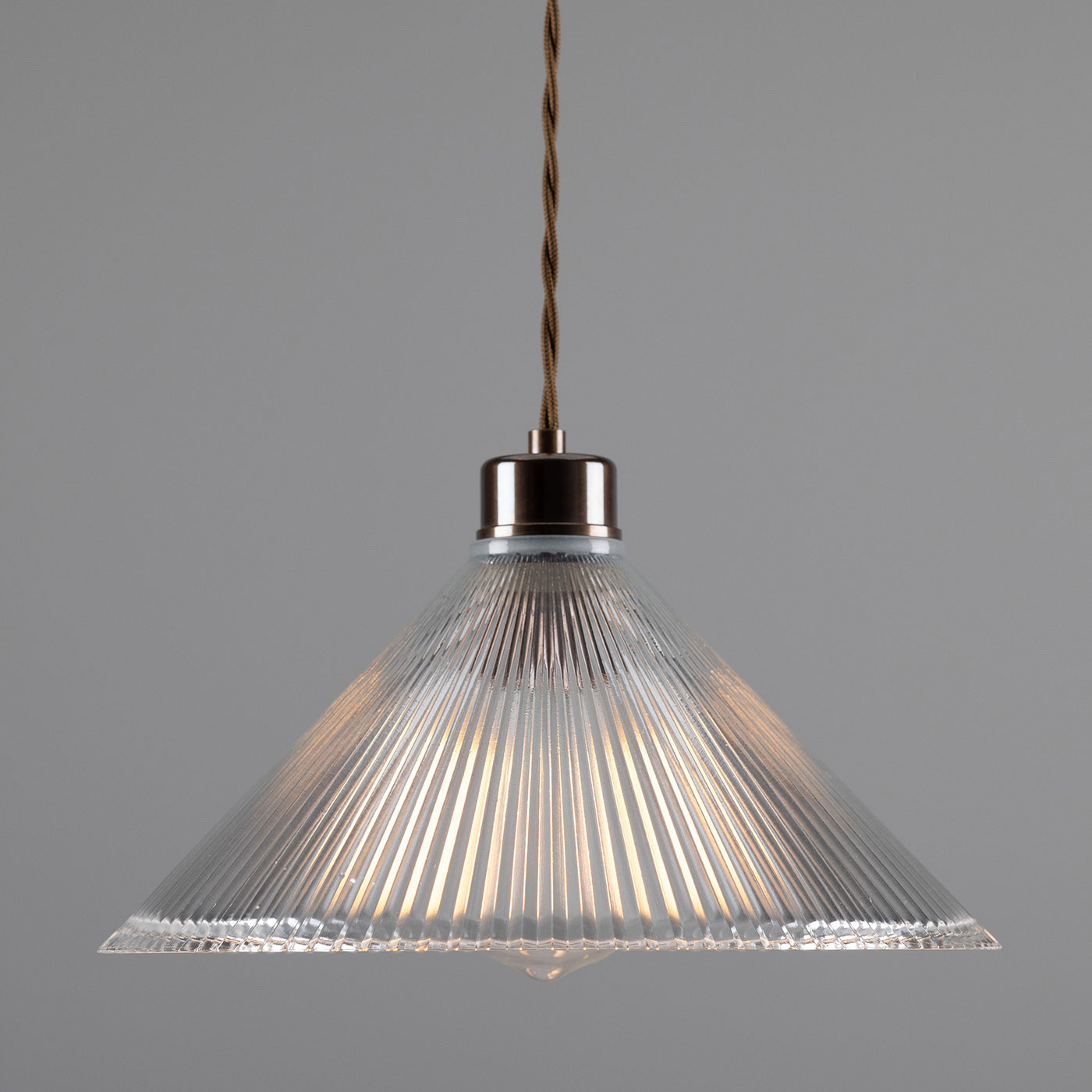 Material: Brass/copper, holophane glass, twisted textile cable