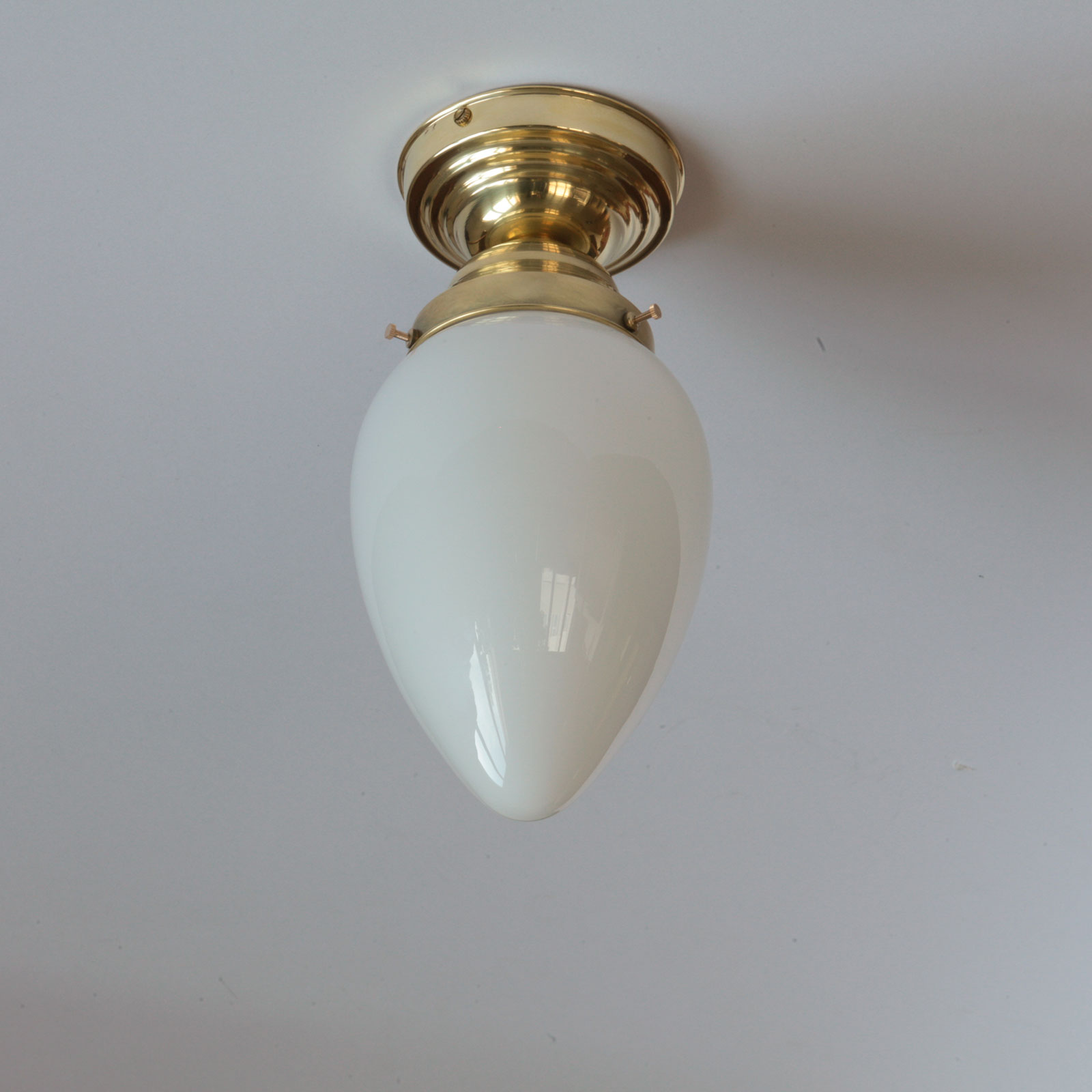 This small Art Nouveau ceiling light with white opal glass in a teardrop shape is well suited for small to medium-sized rooms.
