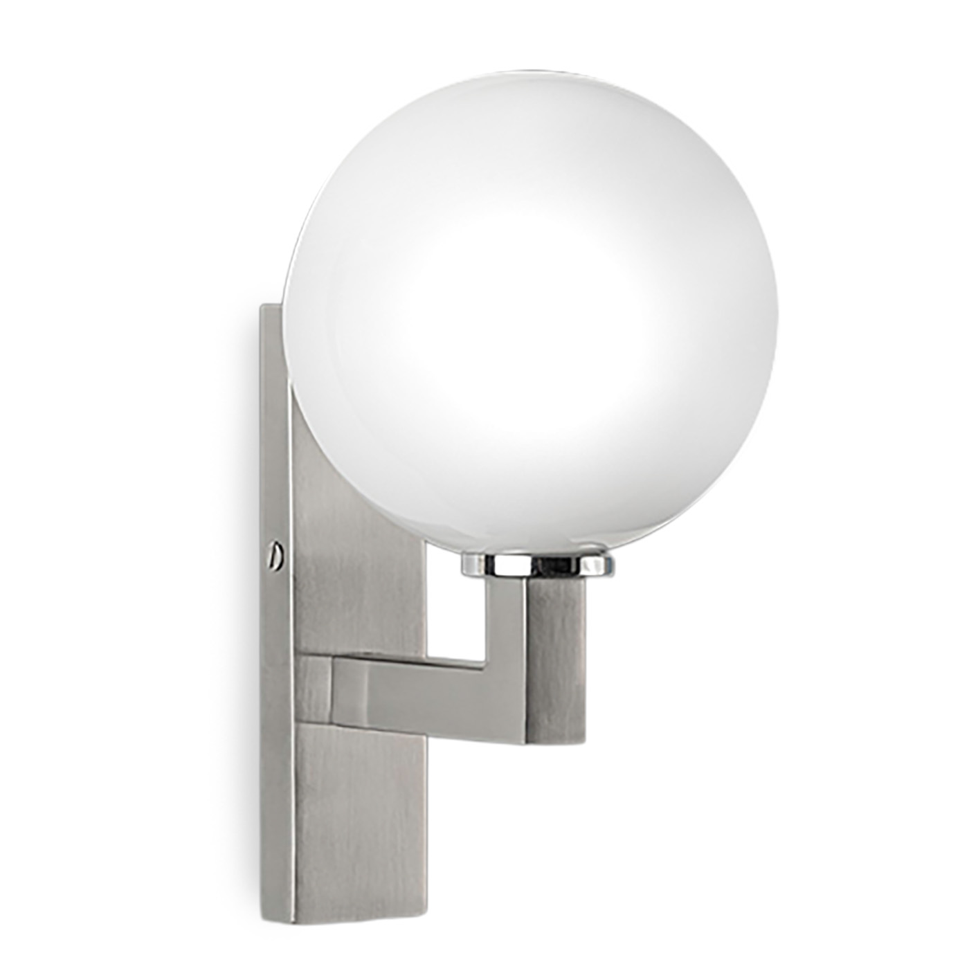 Thanks to its compact design, this elegant ball wall lamp fits into any bathroom and, with its white glass shade, provides glare-free light and a stylish ambience.