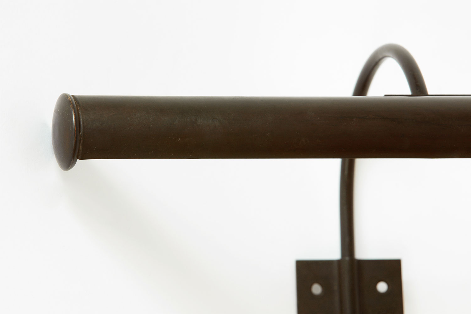 These elegant, classic picture lights with curved wall arm are available in three different widths. Various surfaces: patina, brass, nickel, etc.